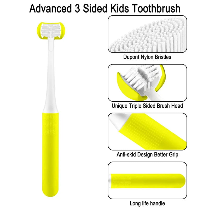 3-Sidig Tandborste för Barn – Extra Mjuk, U-Formad Design för Djup Rengöring