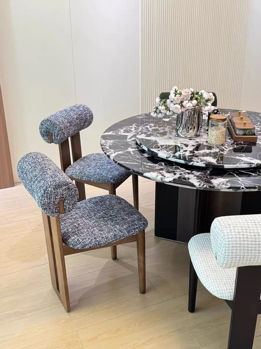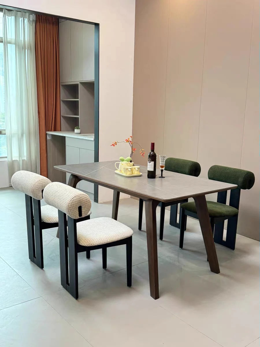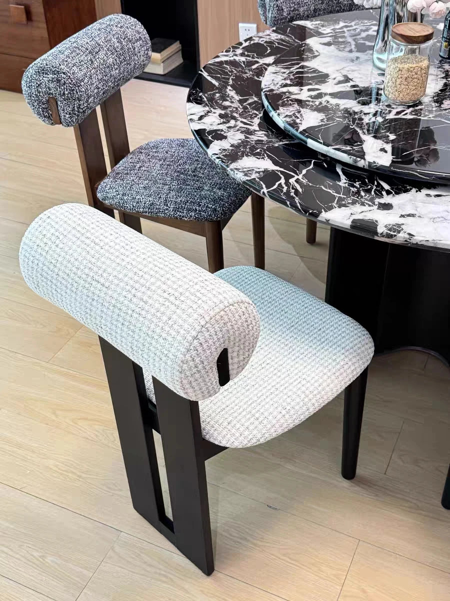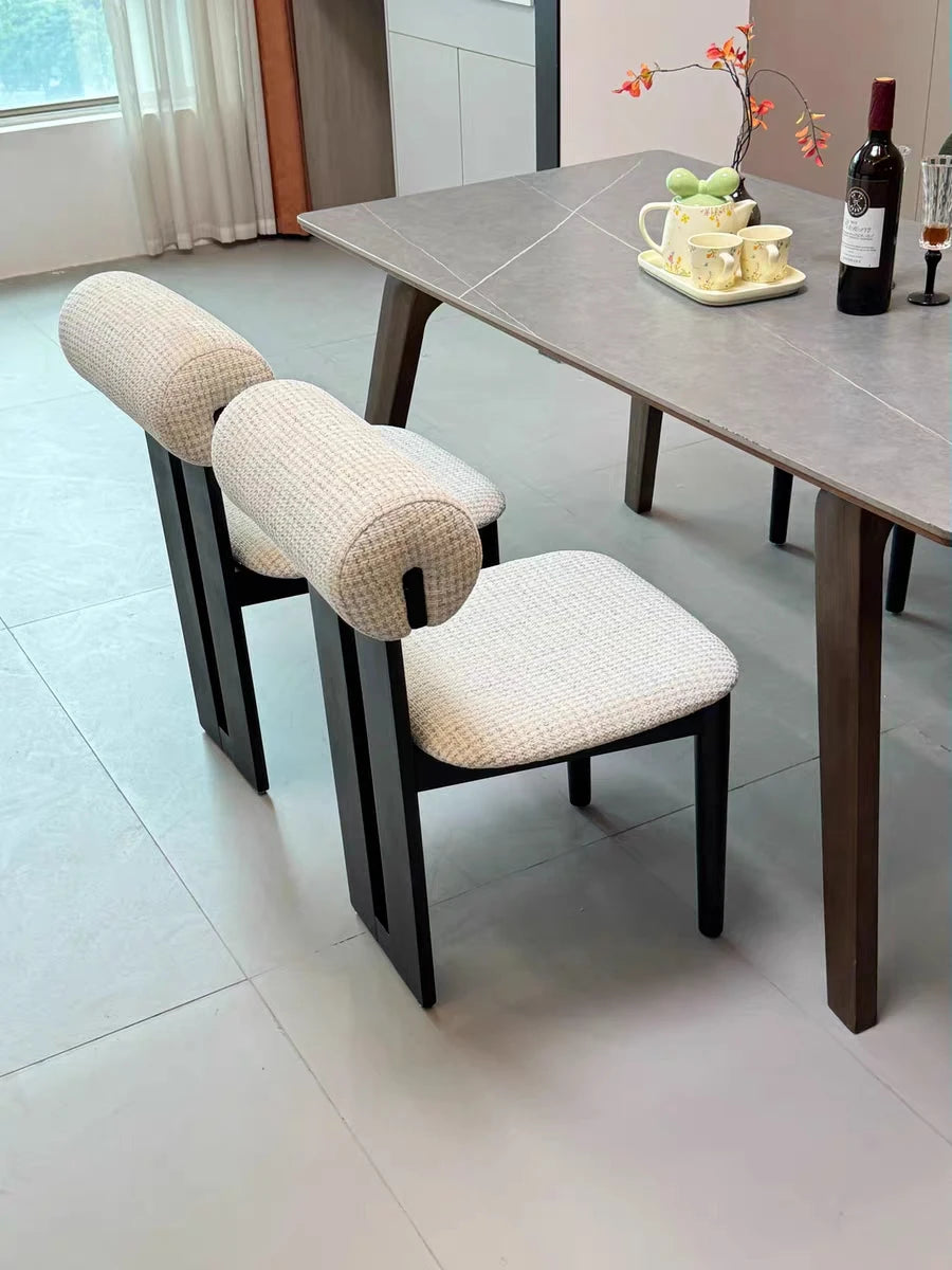 Ett stilrent 4-pack matstolar i nordisk stil med fransk retrokänsla. Stolarna har en stabil ram i massivt trä och en bekväm sits i tyg med mjuk stoppning. Den enkla och eleganta formen passar perfekt i kök och matrum och fungerar lika bra till vardagsmiddagar som till gäster.
