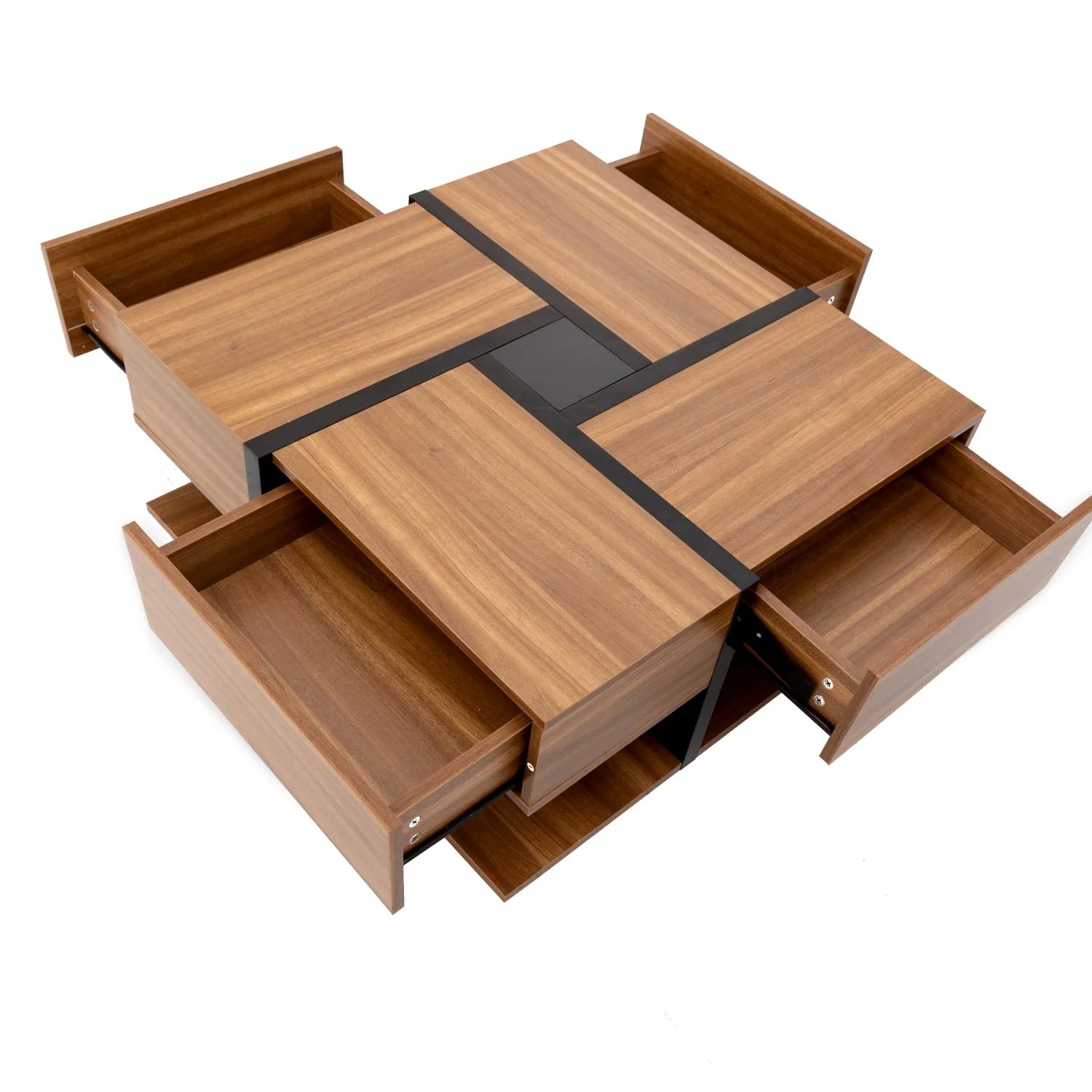 🛋️ Beskrivning: Upptäck vår senaste skapelse – ett kvadratiskt soffbord som förenar form och funktion. Med sina kompakta mått passar det perfekt i vardagsrummet och erbjuder gott om plats för sociala stunder eller avkopplande kvällar. De fyra lådorna håller ytan prydlig, medan den konstnärliga designen med nyanser och linjer ger ett modernt uttryck. Den breda nedre hyllan låter dig visa upp dina favoriter med stil. Ett tidlöst val för dig med känsla för design.
