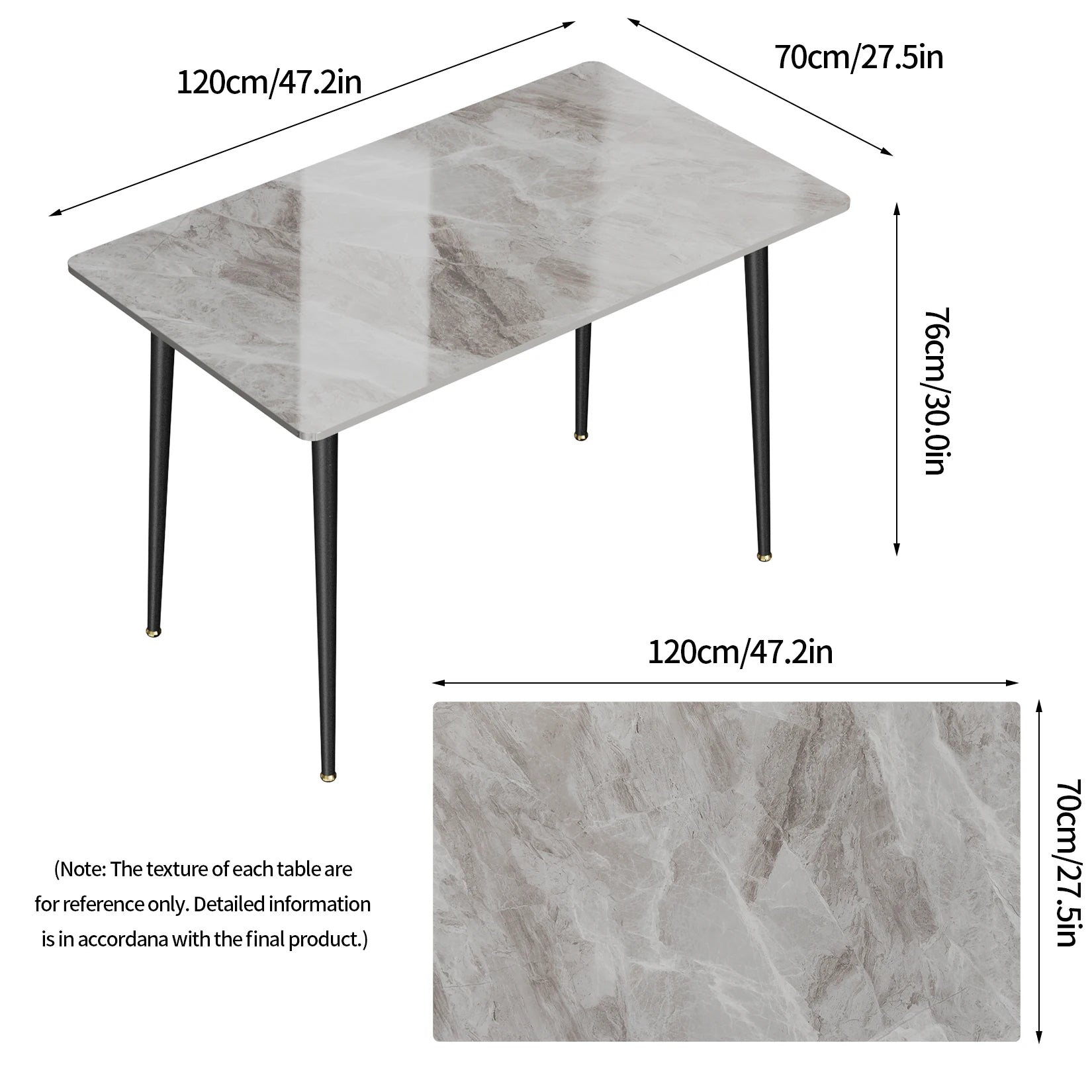 LUVODI Matbord 120 cm – Lyxigt Marmormönster med Metallben för 4–6 Personer