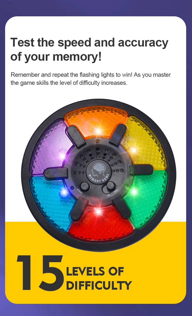 Utveckla minnet och koncentrationen med detta kreativa elektroniska spel. Perfekt för barn och vuxna – roligt, utmanande och lärorikt!