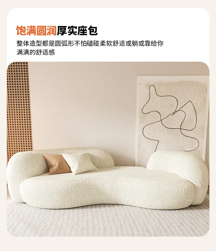 En elegant och mjuk loungsoffa med rundad form och konstnärlig komfort – perfekt för avslappning och stilren heminredning.