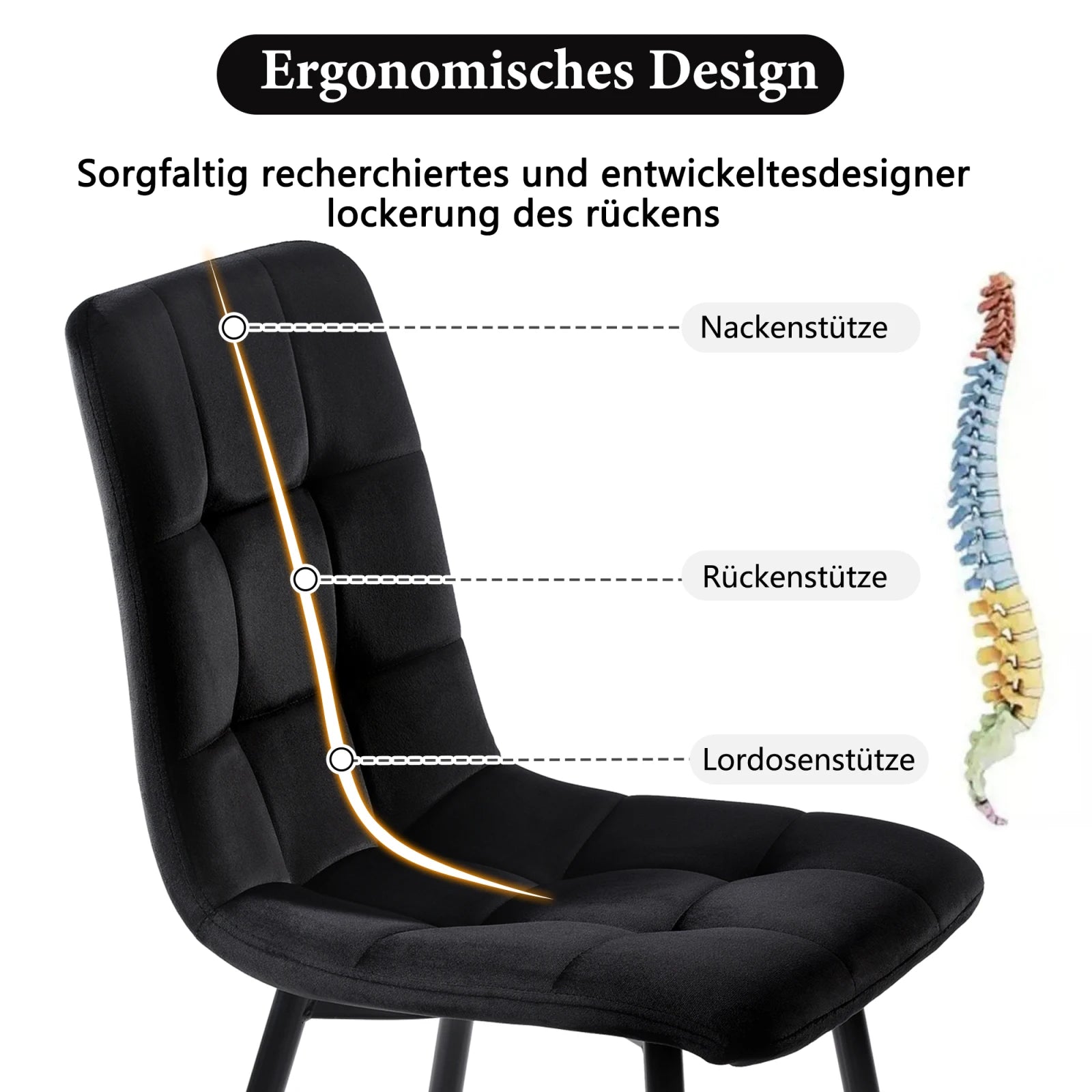Lyft din inredning med dessa eleganta och mångsidiga stolar i modern stil. Med mjuk sammet, dekorativa sömmar och stabil metallram är de perfekta för både matplats, sovrum och hemmakontor.