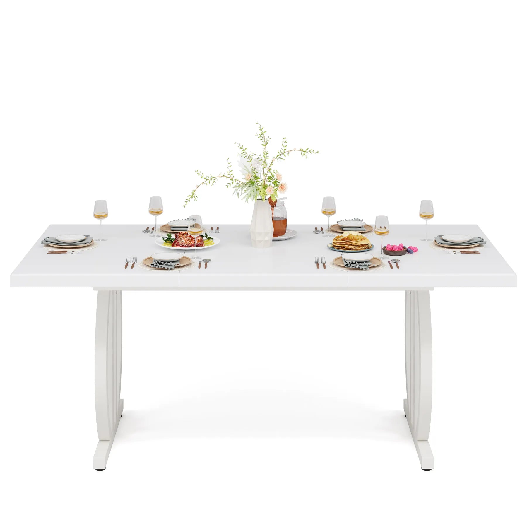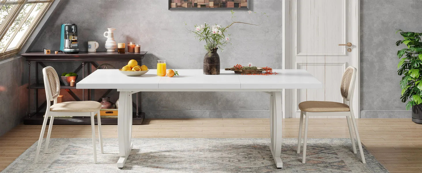 Skapa en elegant och inbjudande matplats med detta rymliga matbord från Tribesigns. Med sin minimalistiska helsvarta design, robusta metallram och generösa storlek är det perfekt för både vardagsmiddagar och sociala tillfällen.