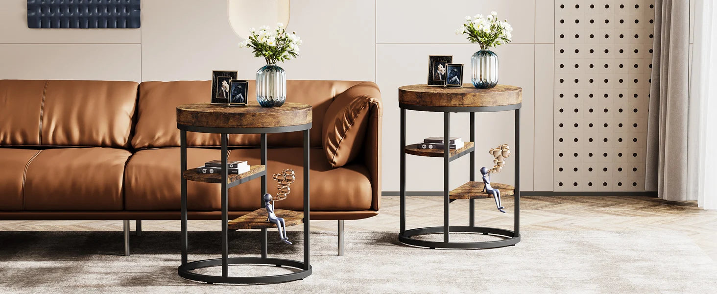Tribesigns Rund Sidobord med 3 Hyllor – Industriell Design – För Små Utrymmen