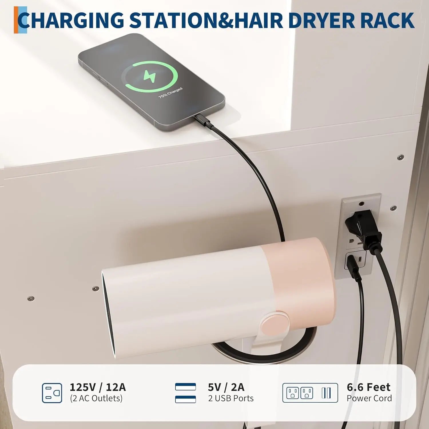 🧴 Hållare för hårfön: Snygg och funktionell lösning för stylingverktyg – alltid lättillgänglig.