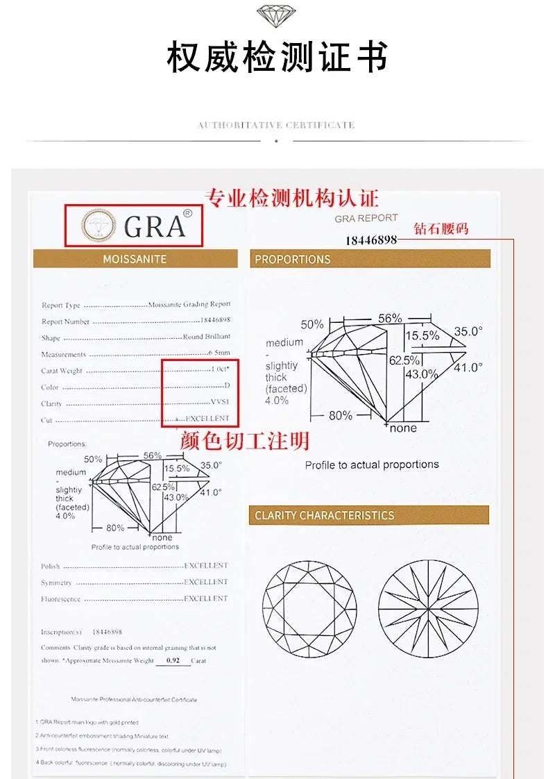 Förpackning: Lyxig presentask + moissanite-certifikat