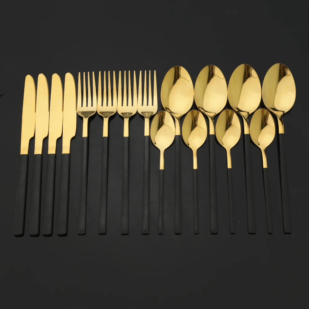 Bestickset 16-delar Svart Guld – Rostfritt Stål