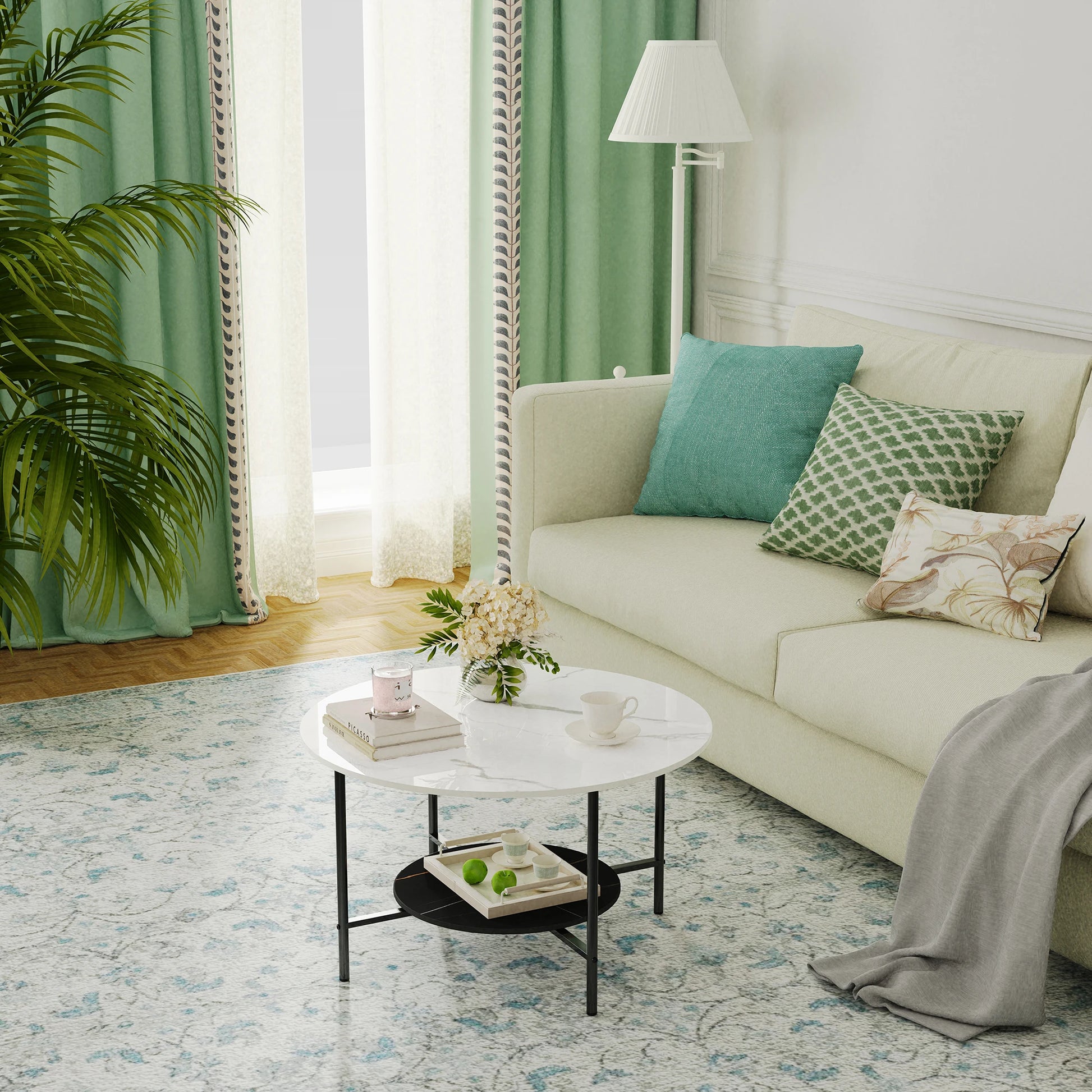 Modernt 2-vånings runt soffbord i sintrad sten – exklusivt bord med metallram för vardagsrum & sovrum