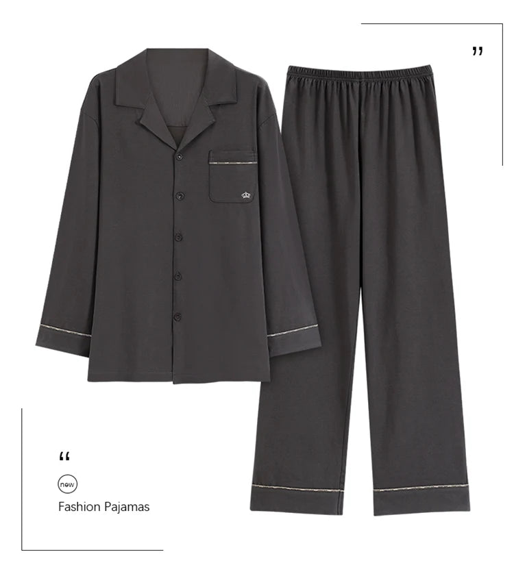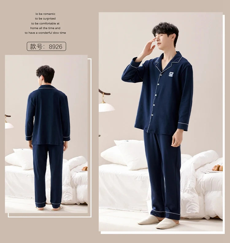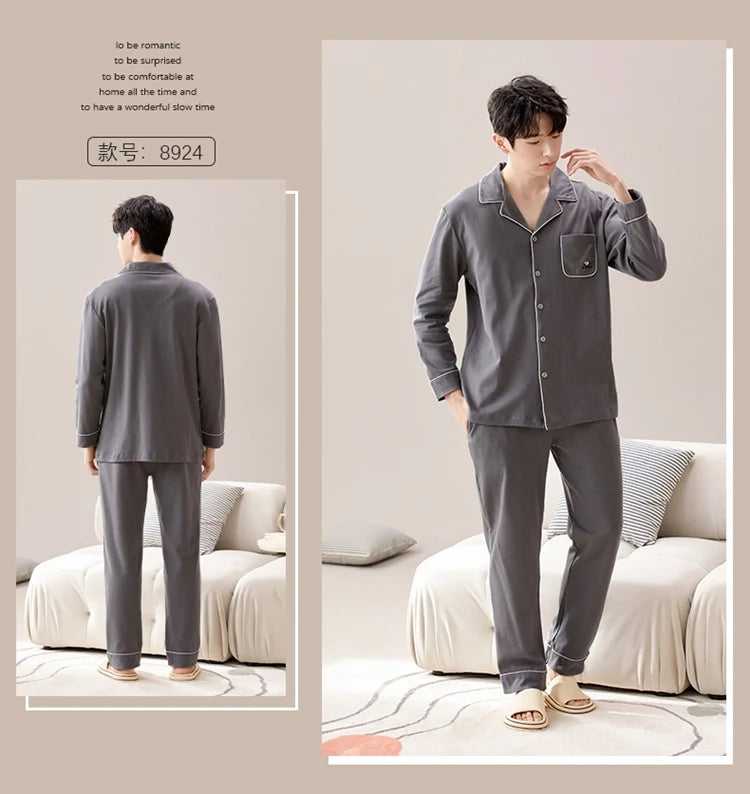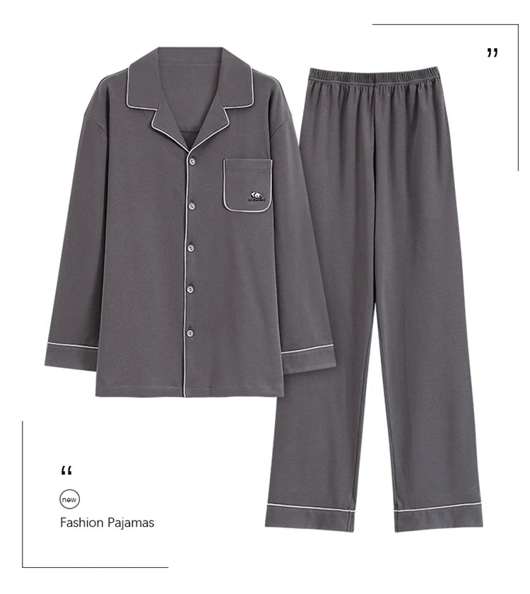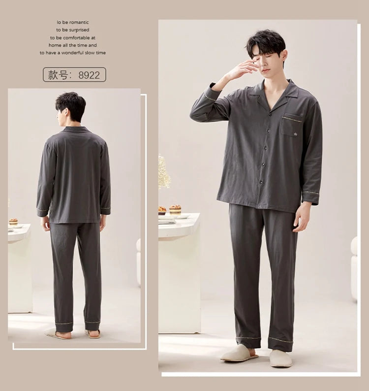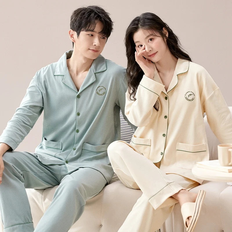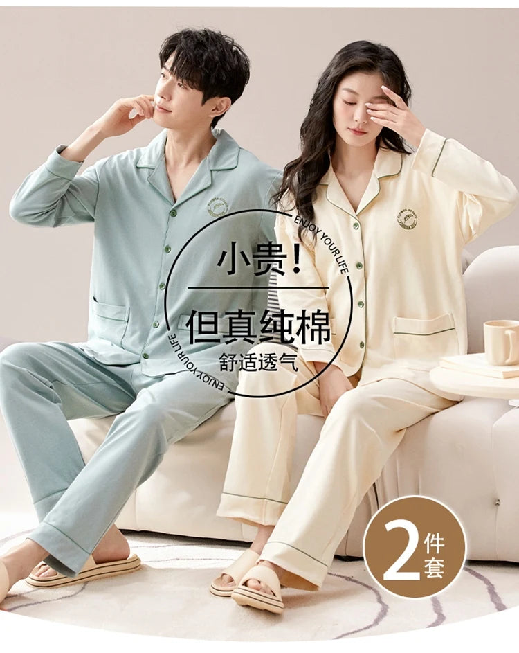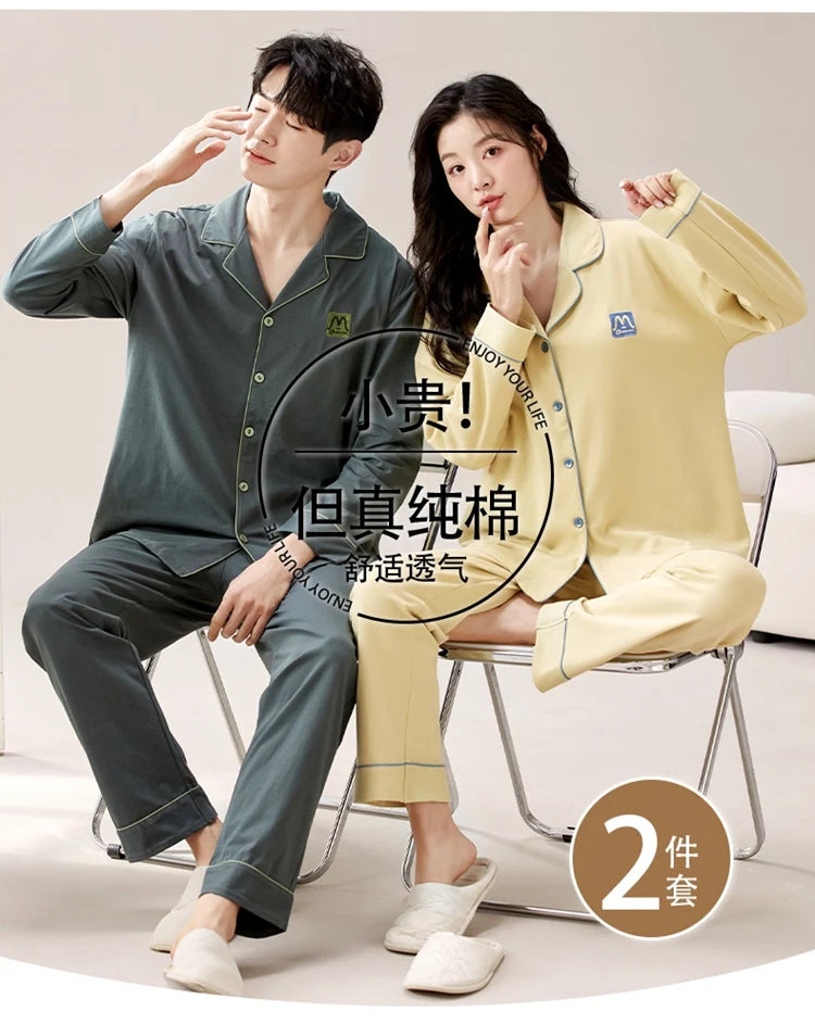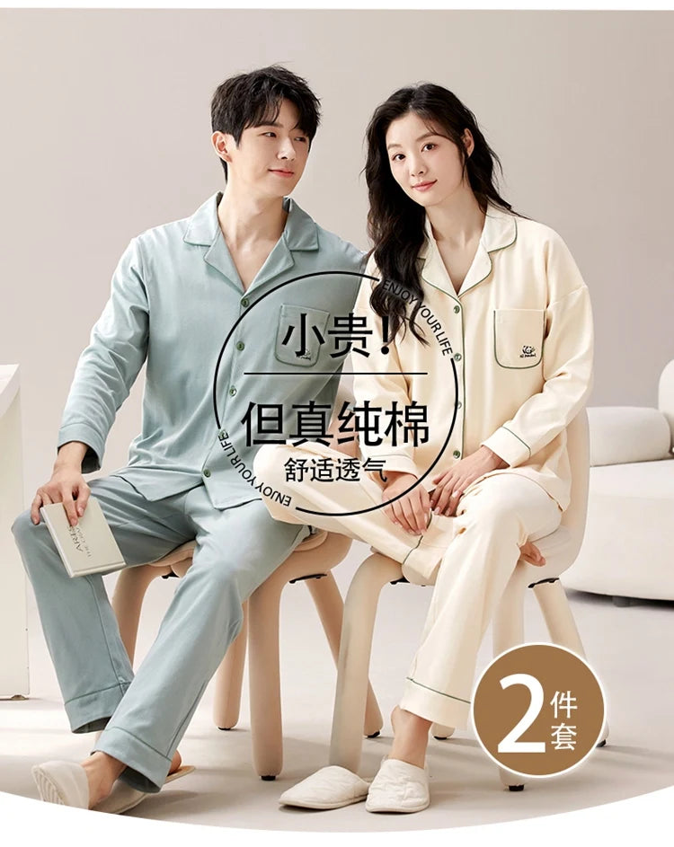 Matchande pyjamas för par med mjuk stickad bomull – perfekt för mysiga kvällar hemma under höst och vinter.