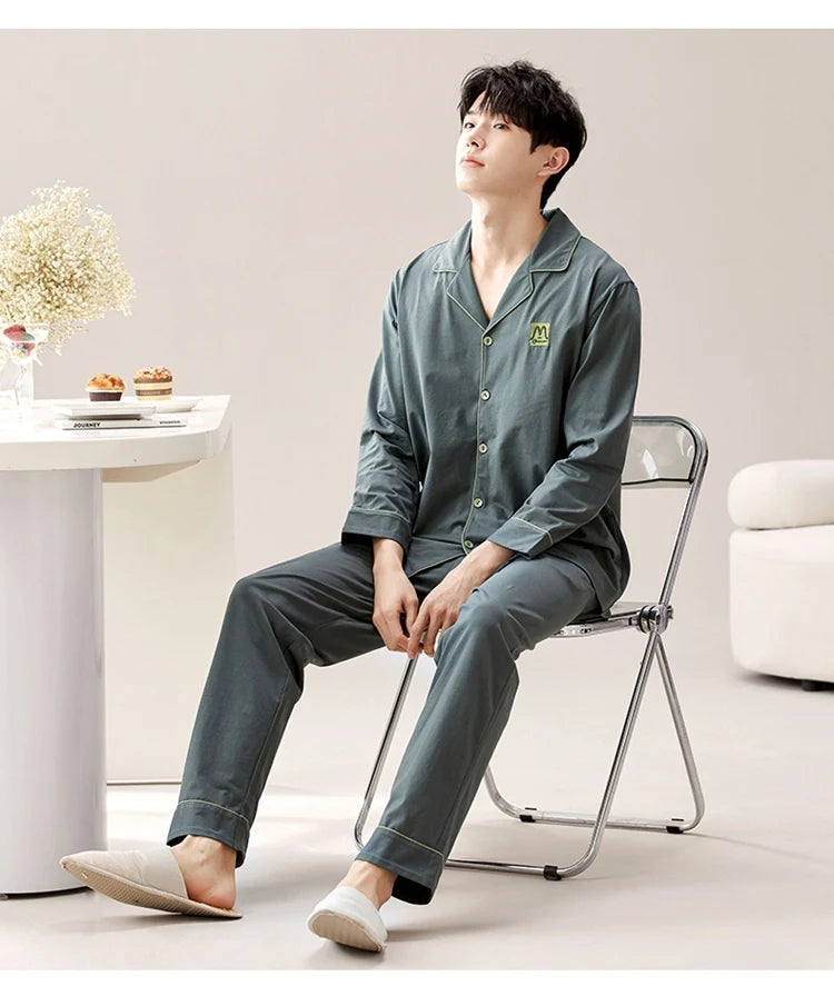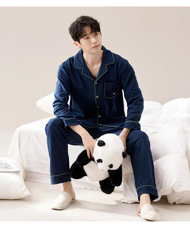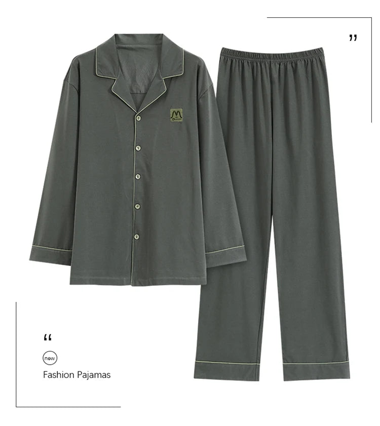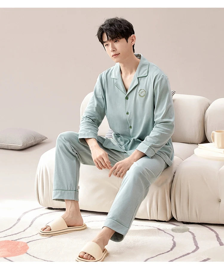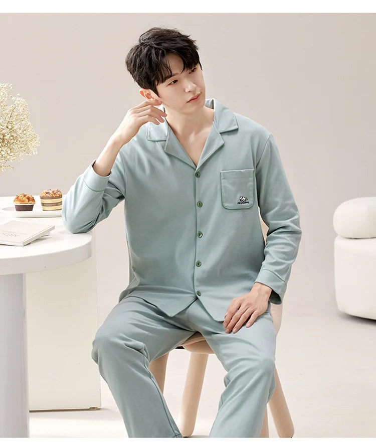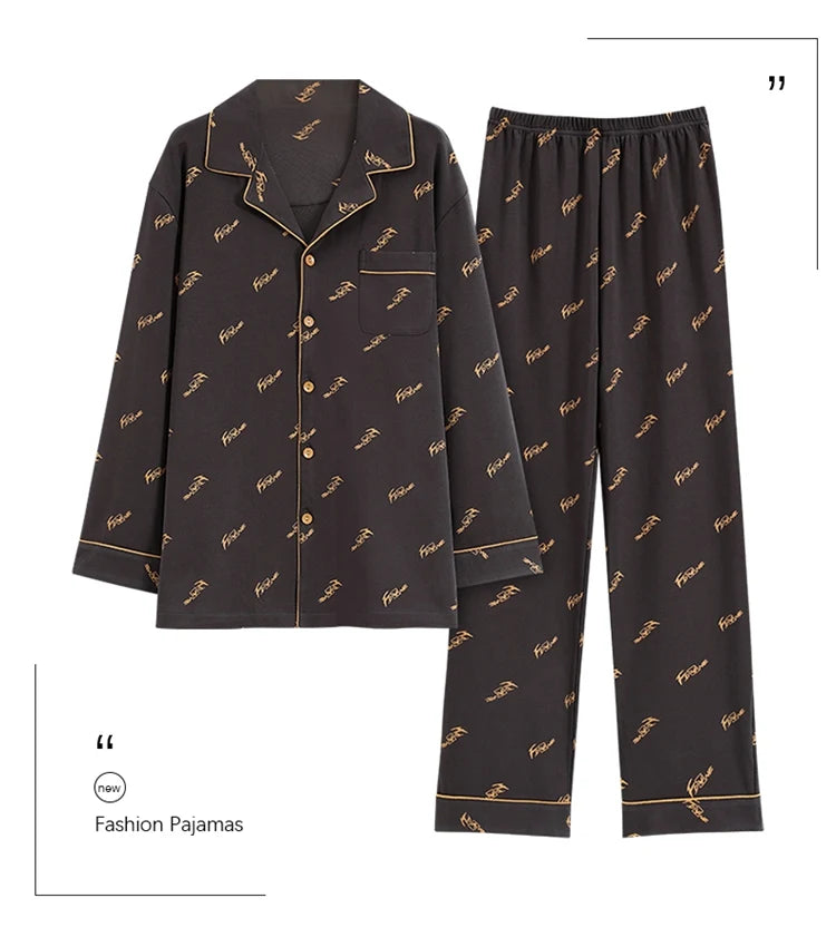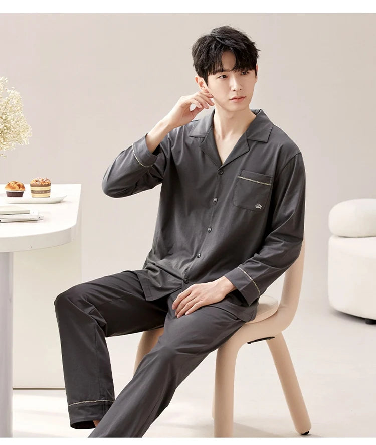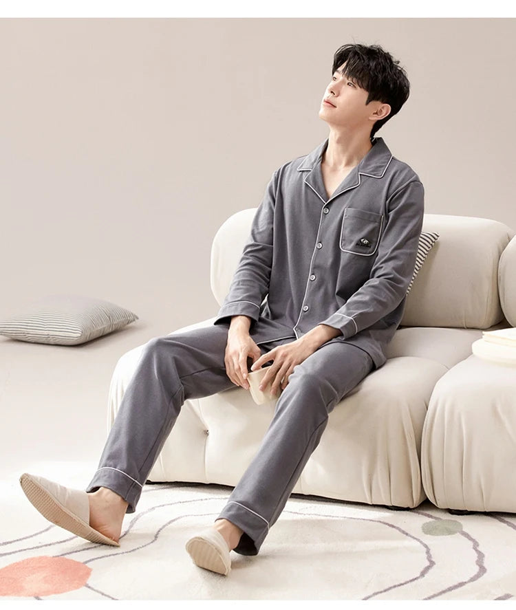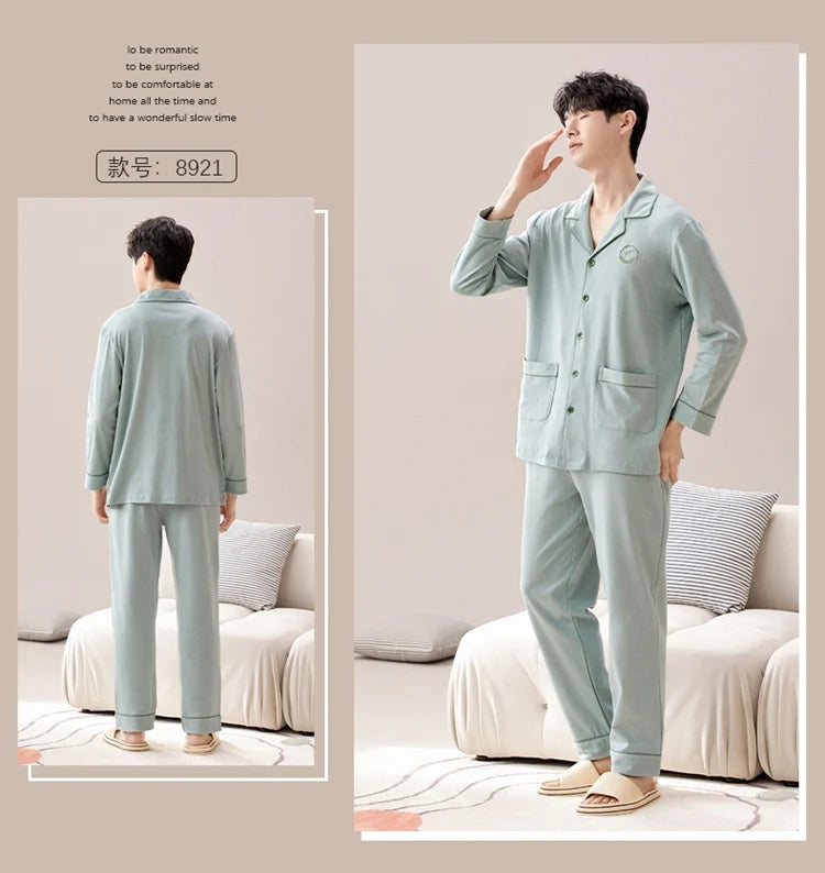 Matchande pyjamas för par med mjuk stickad bomull – perfekt för mysiga kvällar hemma under höst och vinter.