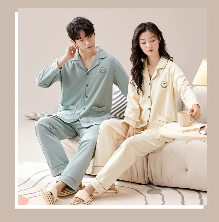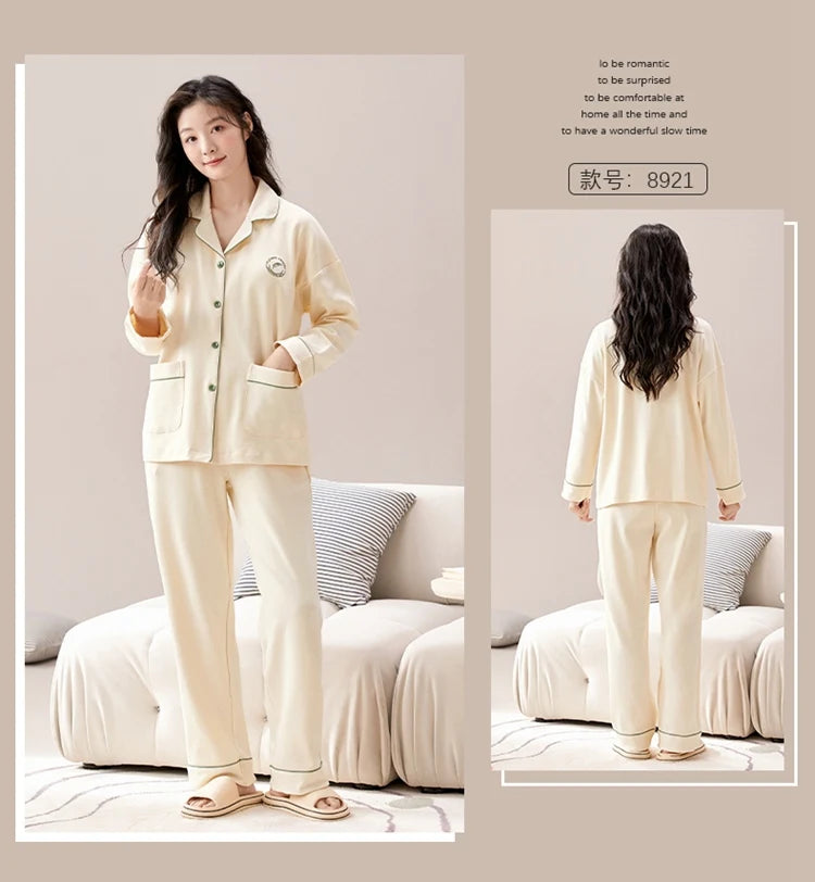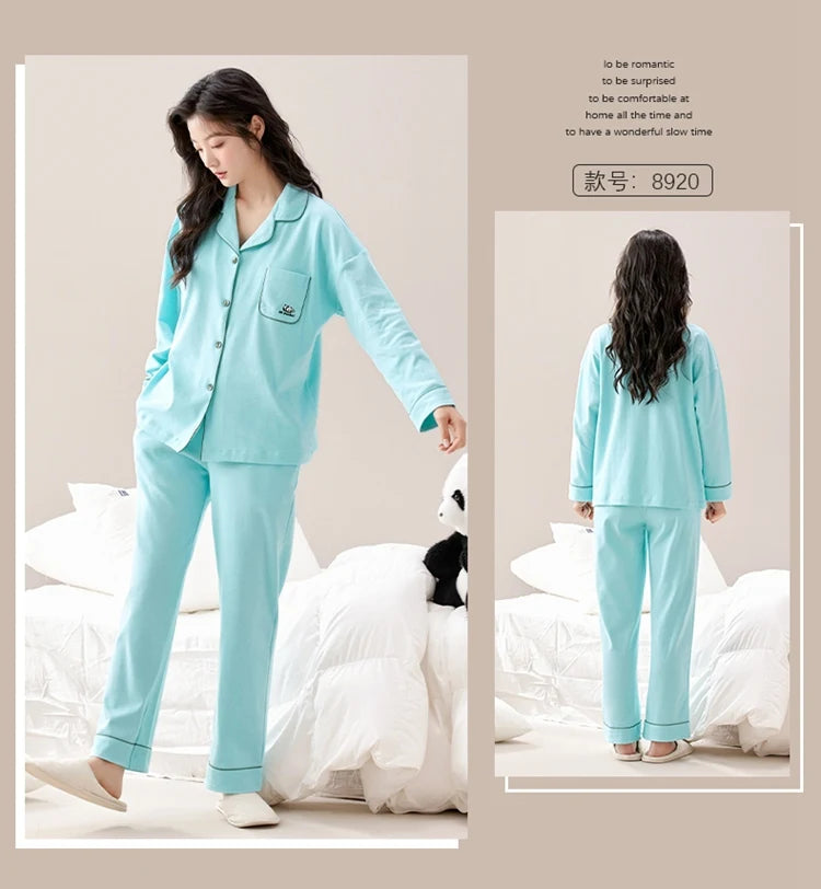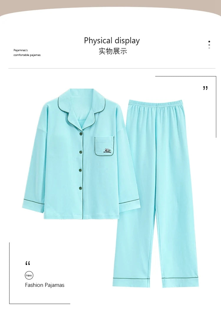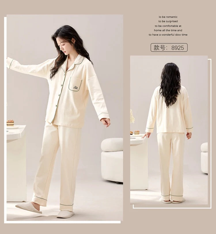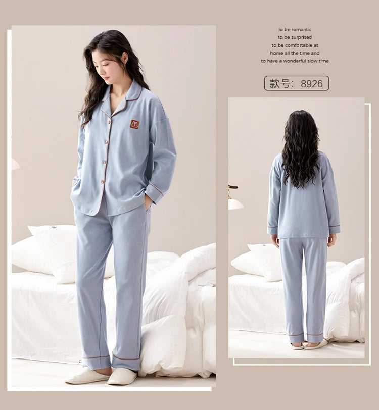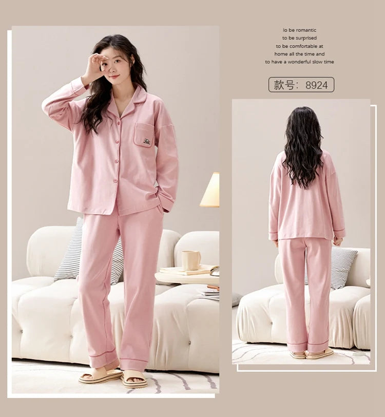 100% Bomull Parpyjamas – Höst/Vinter – Långärmad & Lös Passform – Koreansk Stil