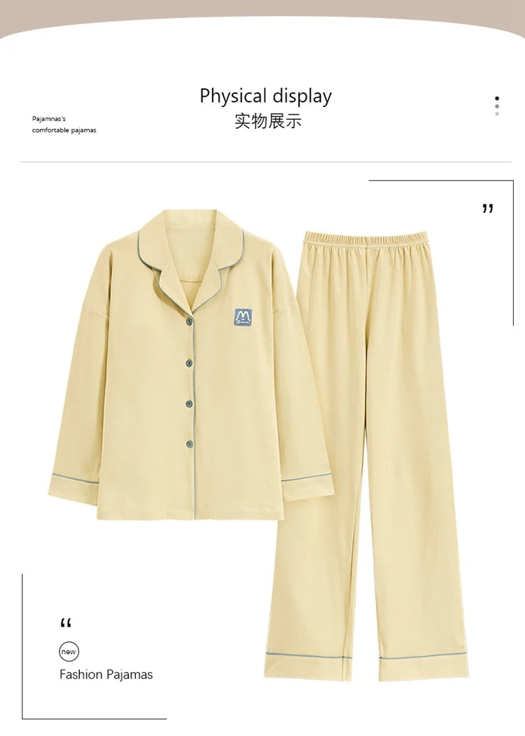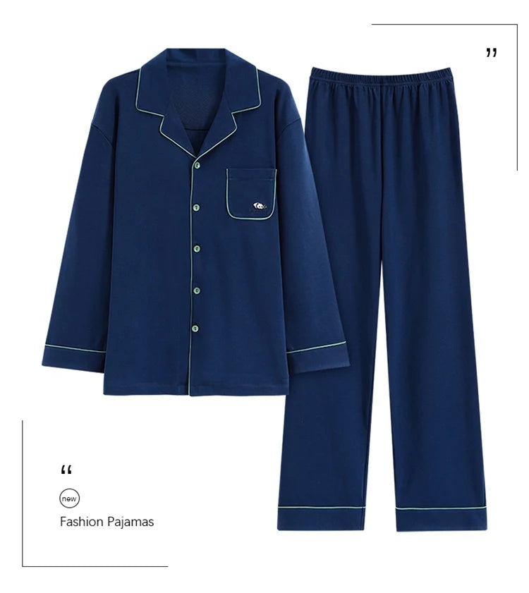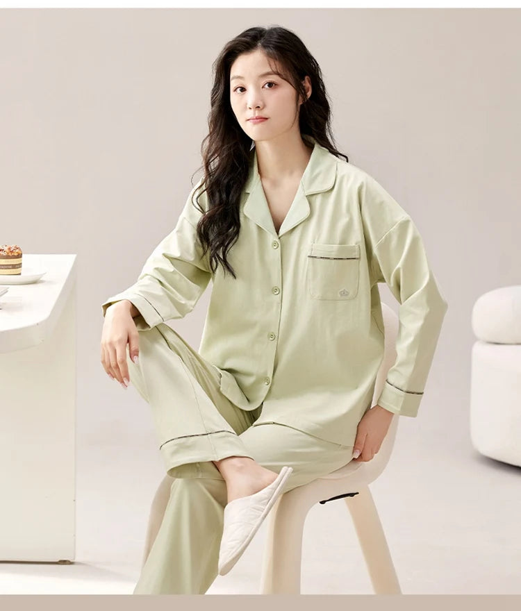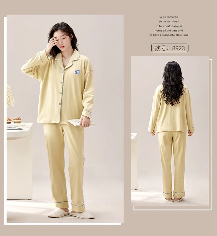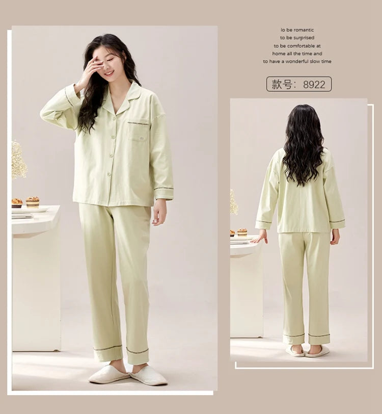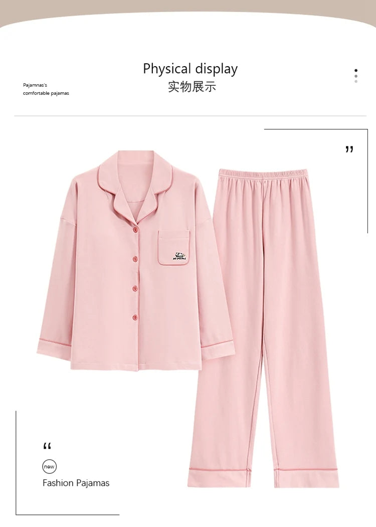100% Bomull Parpyjamas – Höst/Vinter – Långärmad & Lös Passform – Koreansk Stil