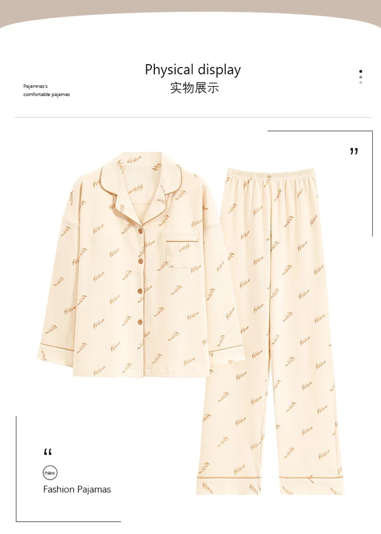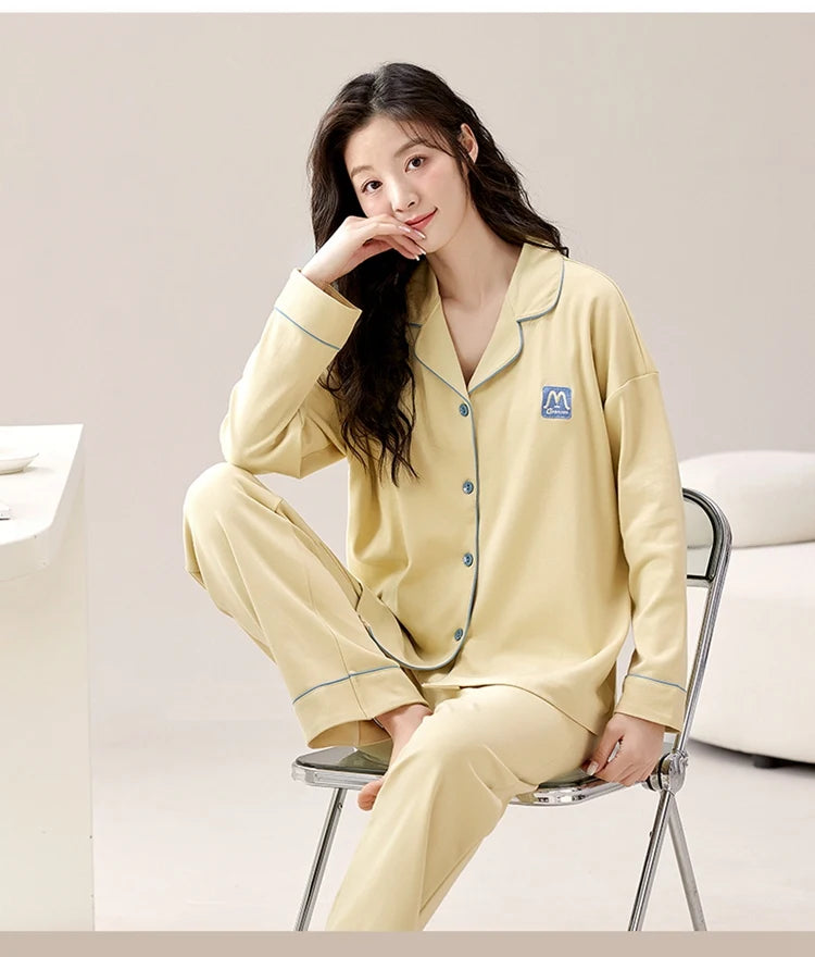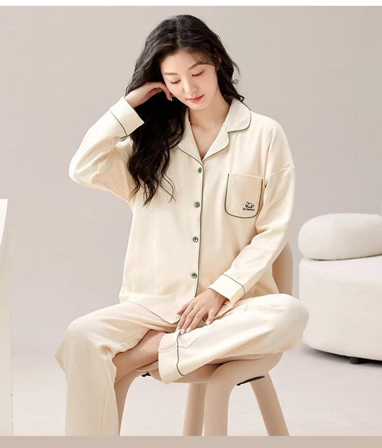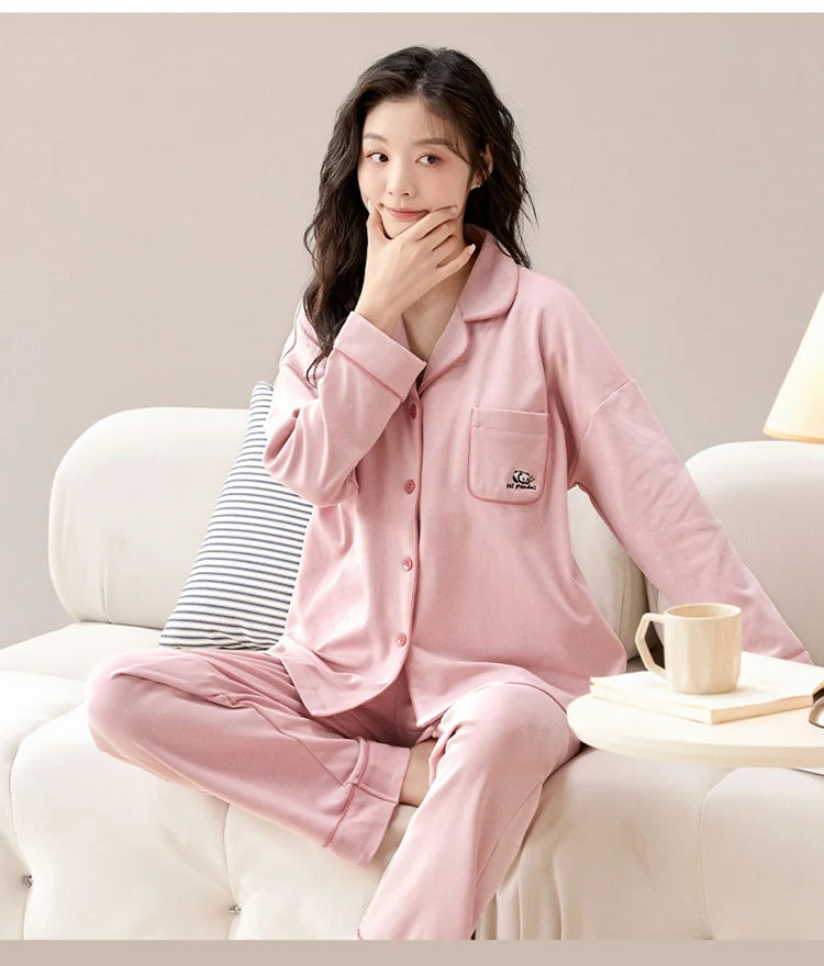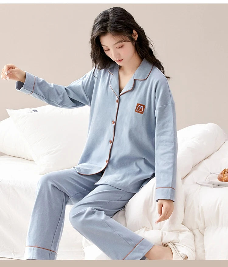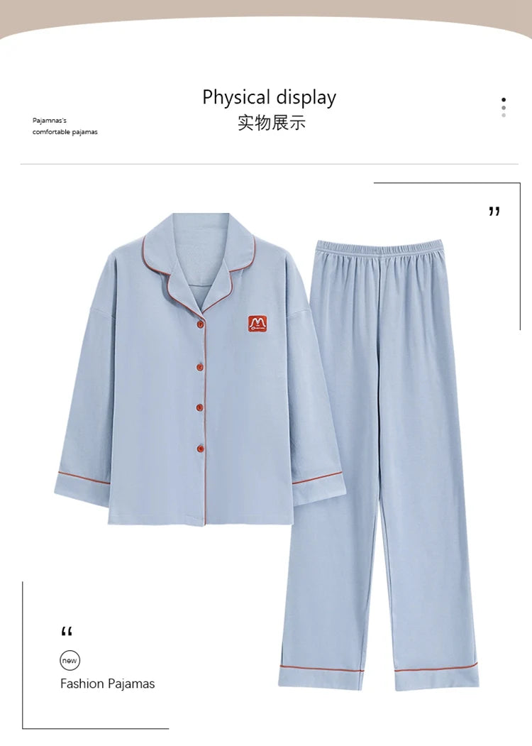 100% Bomull Parpyjamas – Höst/Vinter – Långärmad & Lös Passform – Koreansk Stil