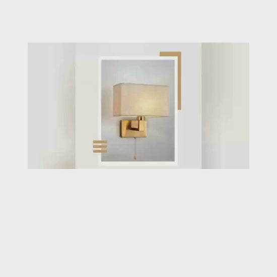 Elegant och funktionell vägglampa i modern stil med dragströmbrytare – perfekt för sovrum, hall, vardagsrum eller hotellmiljö. Ger ett varmt och mjukt ljus genom linneskärm och passar de flesta E27-ljuskällor.
