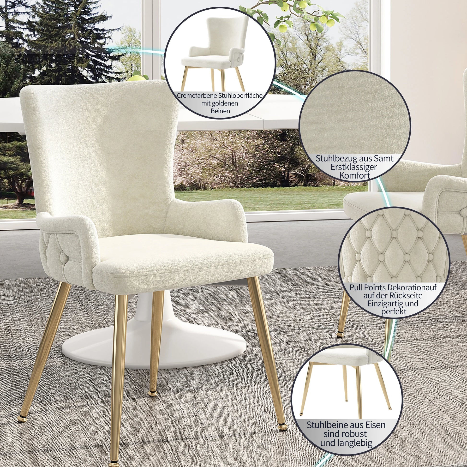 2-pack Sammetstolar med Guldben – Modern Design för Vardagsrum & Sovrum, Beige
