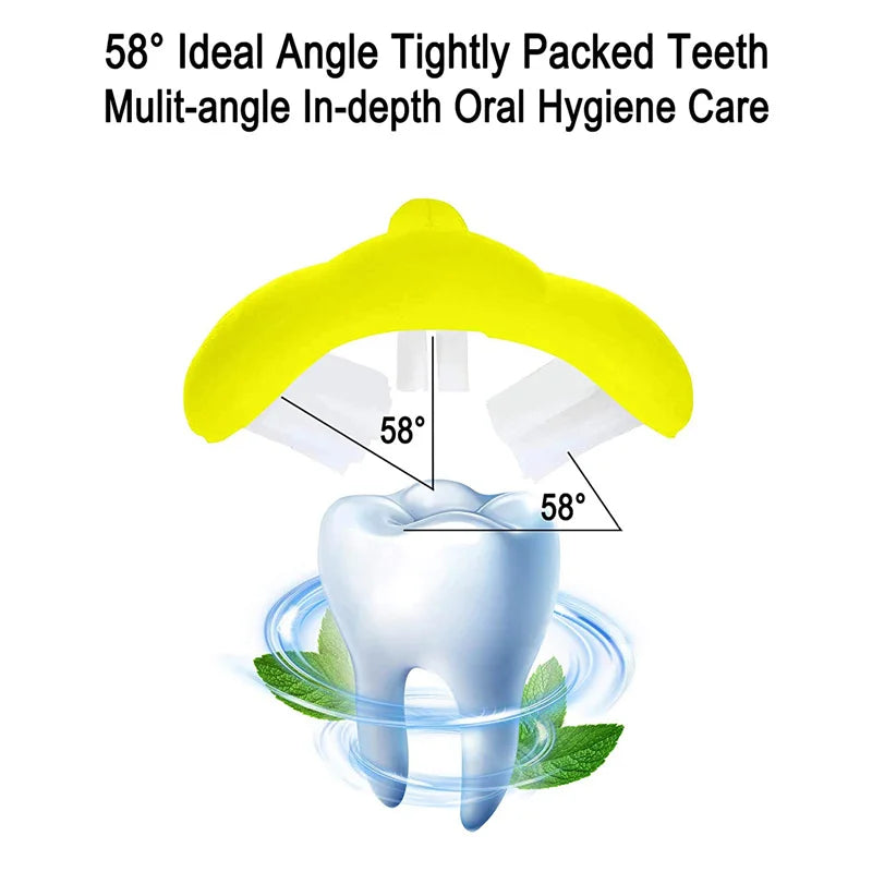 Gör tandborstningen enklare och roligare för barn med denna 3-sidiga träningsborste. Den unika U-formade designen med tre borsthuvuden rengör tänderna från alla vinklar samtidigt – perfekt för små händer och känsliga tandkött.