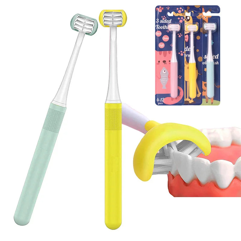 3-Sidig Tandborste för Barn – Extra Mjuk, U-Formad Design för Djup Rengöring