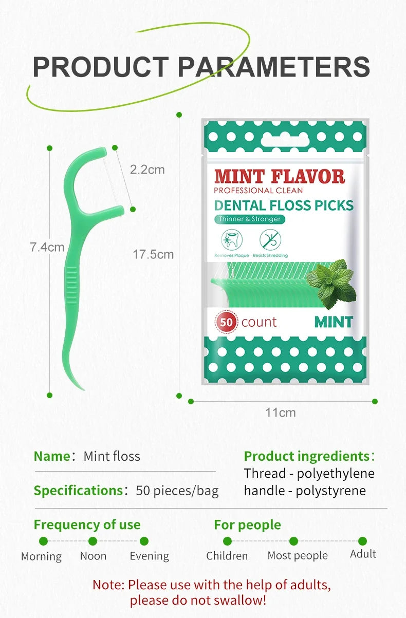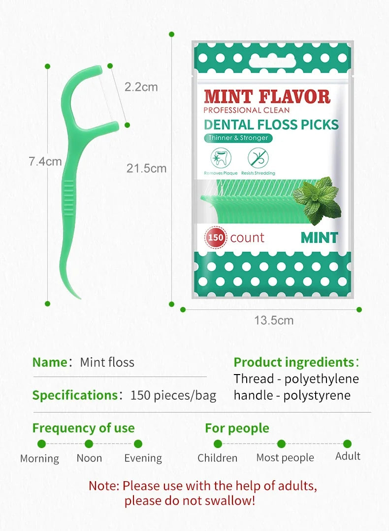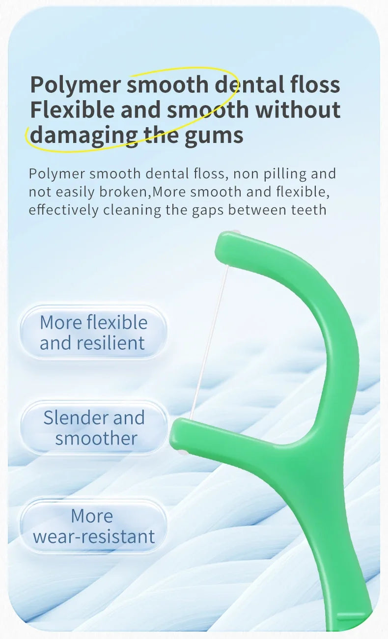 Praktiska och frĂ€scha tandtrĂ„dspinnar med mintsmak â perfekt för daglig munvĂ„rd hemma eller pĂ„ sprĂ„ng.