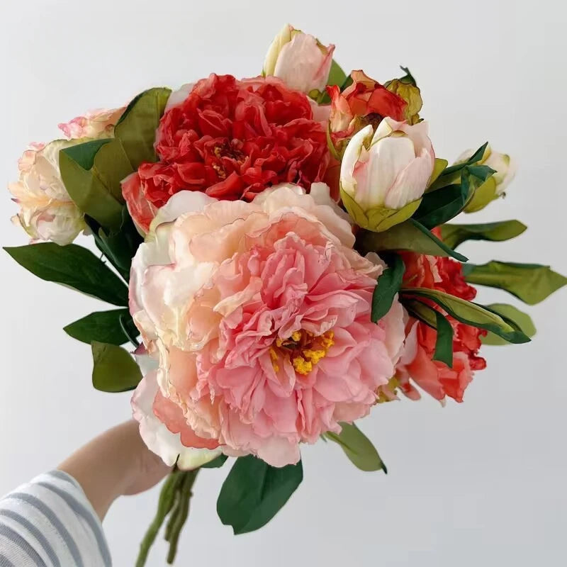 Lyxig Konstgjord Pionbukett – Retro Stil – 49 cm – För Hem & Festdekoration