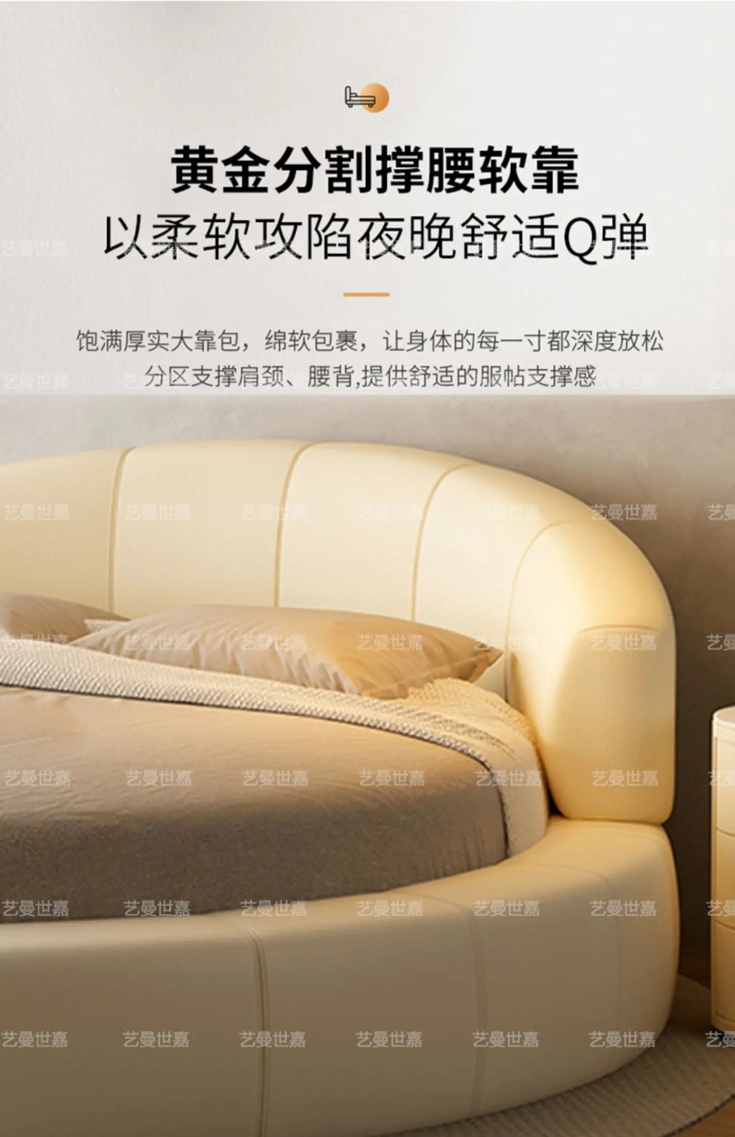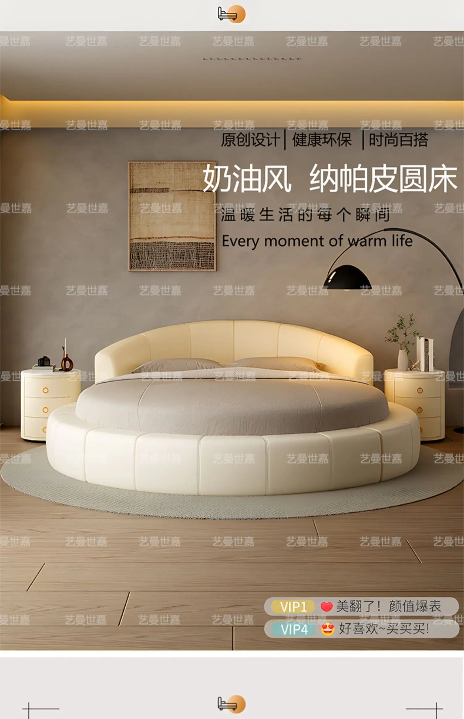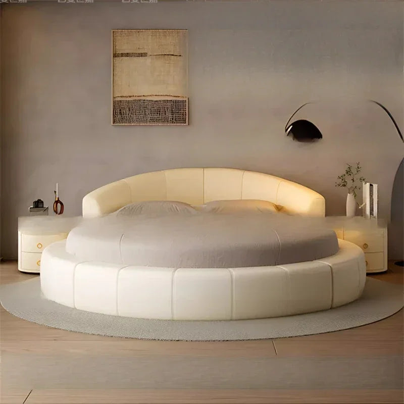 Titel (SEO-optimerad): Rund Säng i Napa-läder – Beauty Princess Design | Nordisk & Marockansk Stil | Lyxig Sovrumsram för 2 personer