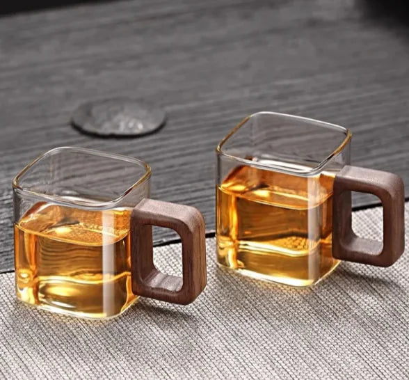 Glaskopp med Valnötshandtag 150ml – Värmetålig & Stilren för Kaffe och Te