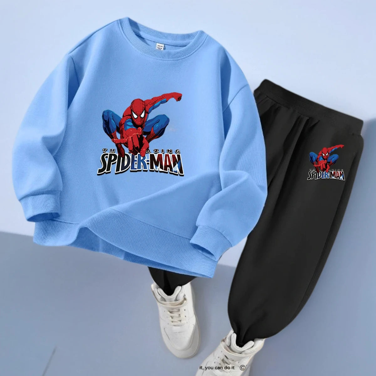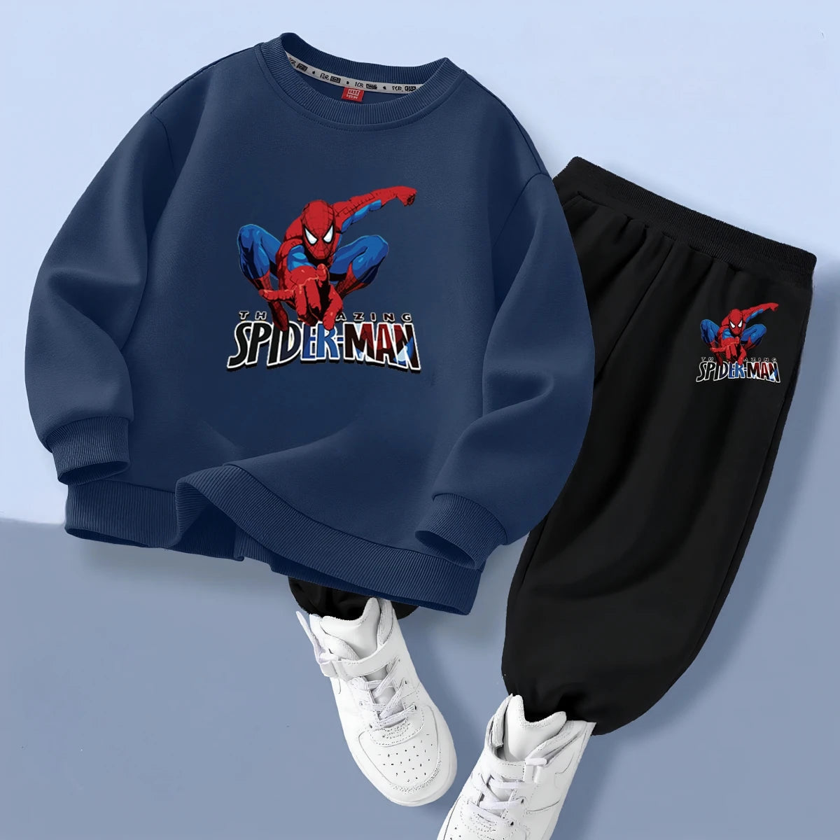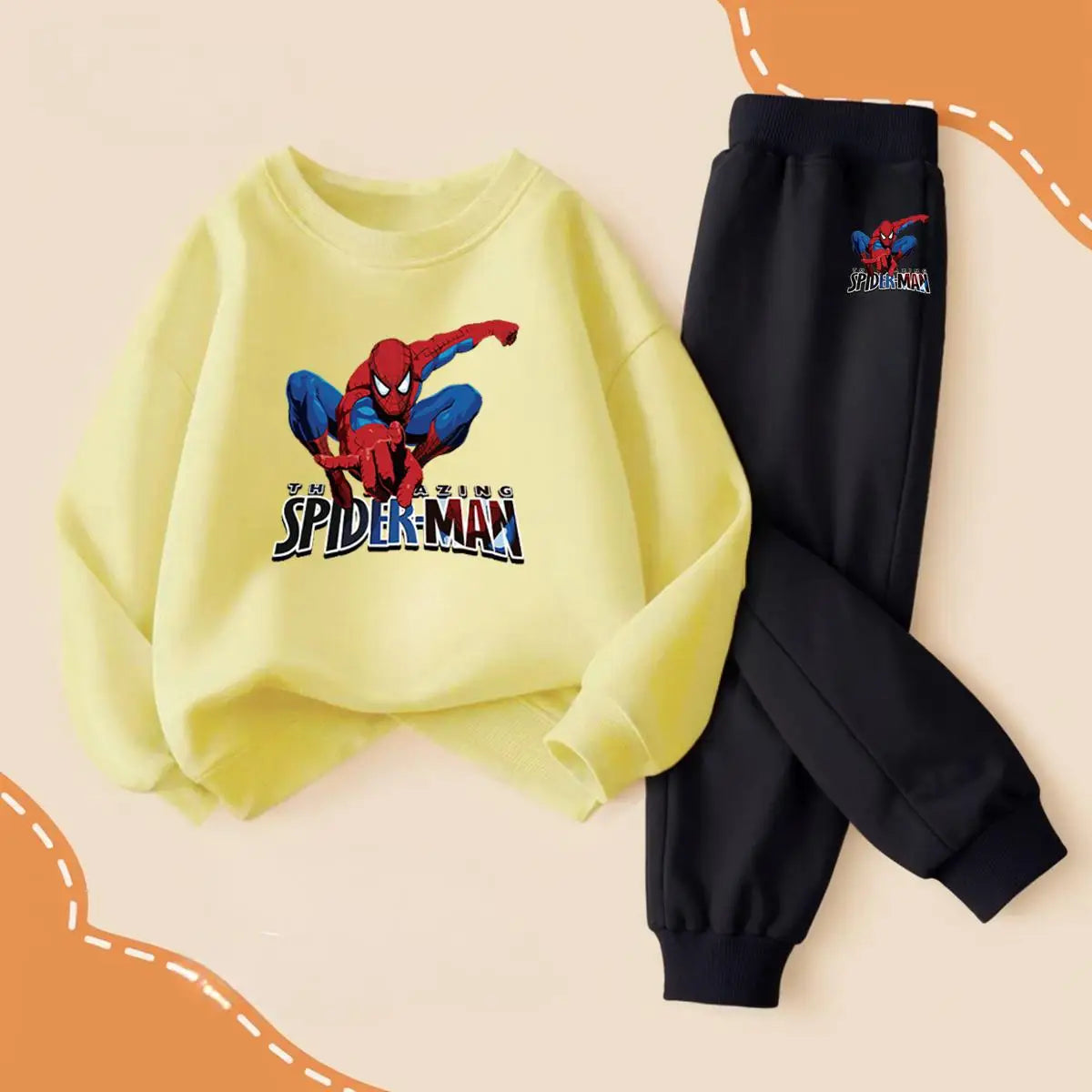 Ett lekfullt och bekvĂ€mt sportset med Spiderman-tryck â perfekt för aktiva barn under vĂ„ren!