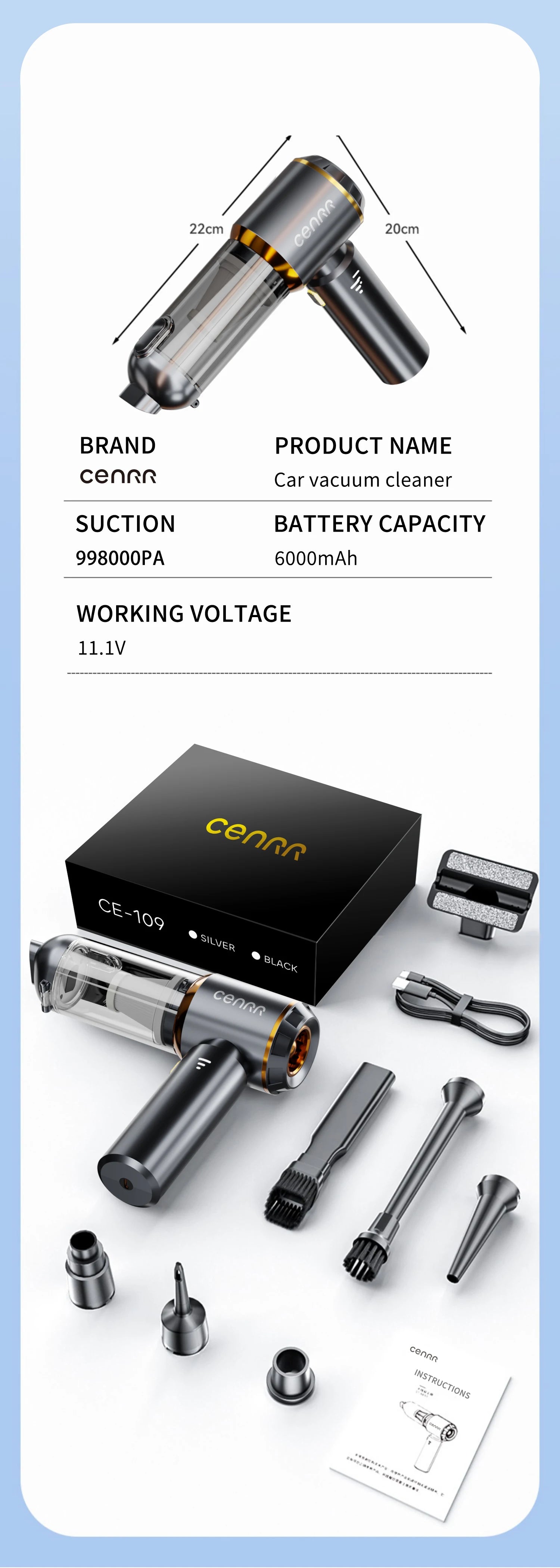 CENRR Pro Max Trådlös Dammsugare – 998000PA, 3×2000mAh, Blås & Sug