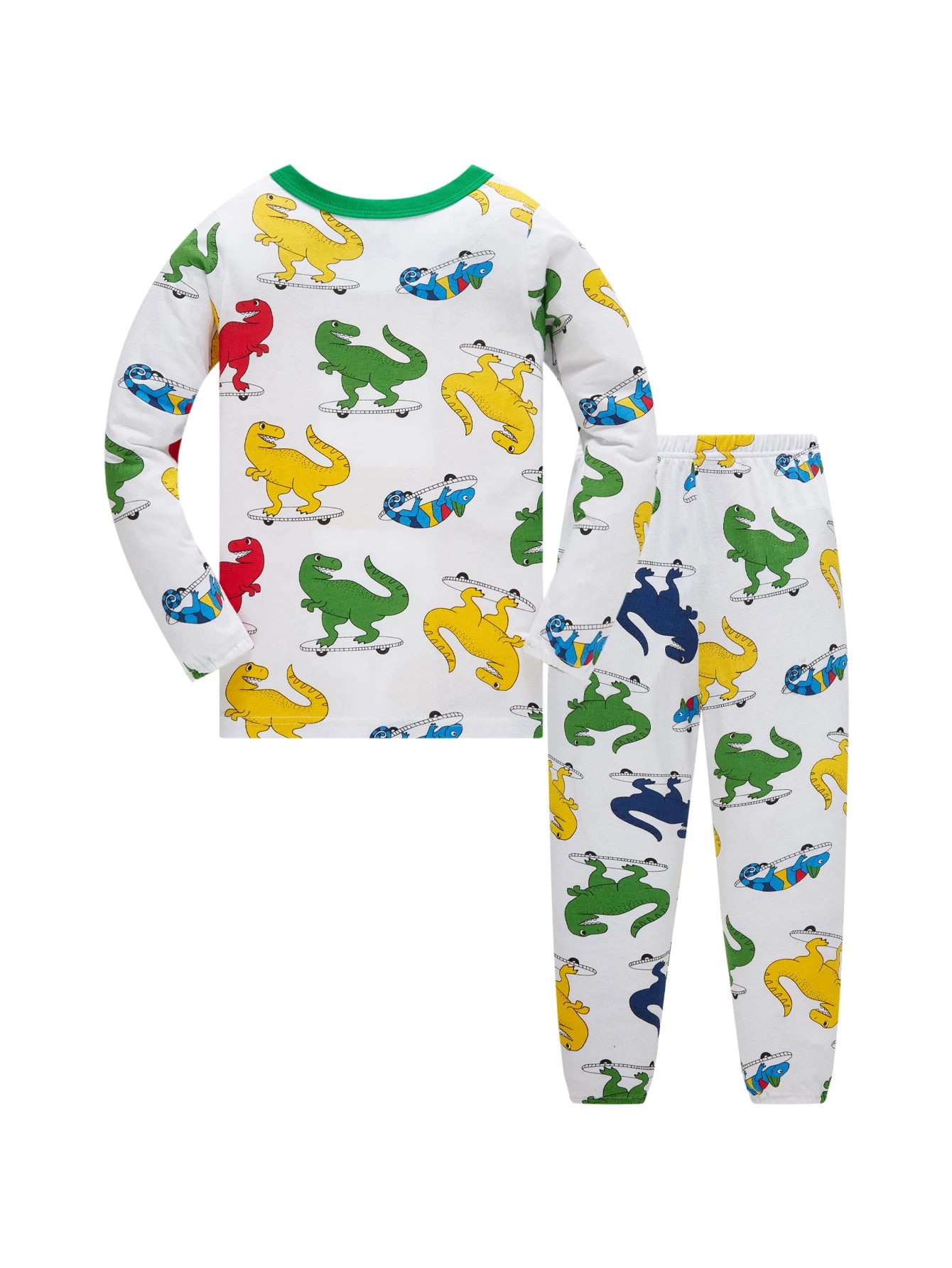 Barnpyjamas i 100% Bomull – Dinosaurieprint – 2-delad Set – Unisex 1–8 år