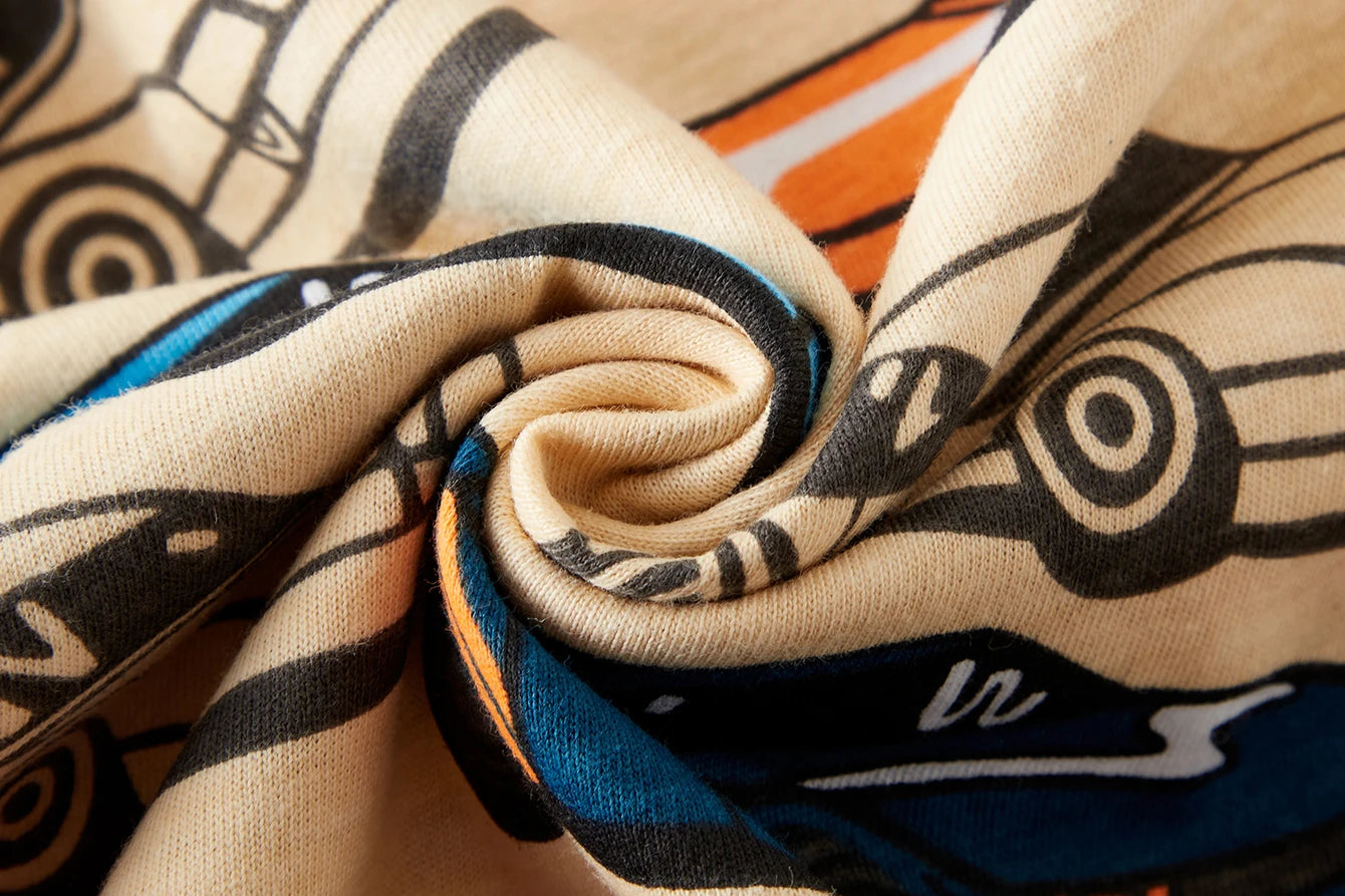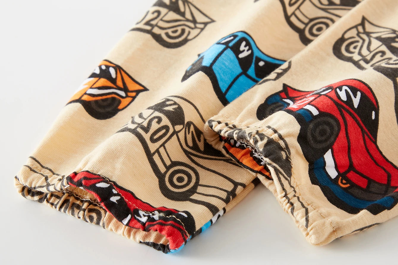 En lekfull och bekväm pyjamas för barn – tillverkad i mjuk jerseybomull med heltryckt bilmotiv. Perfekt för alla årstider!