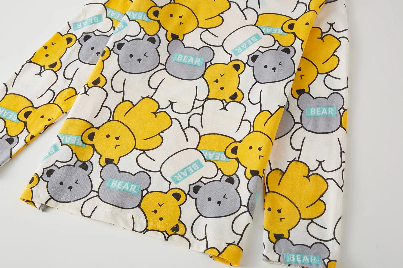 En mjuk och bekvĂ€m pyjamas med lĂ„ngĂ€rmad topp och byxor â tillverkad i ren jerseybomull med lekfullt tryck. Perfekt för alla Ă„rstider och Ă€ven i luftkonditionerade rum.