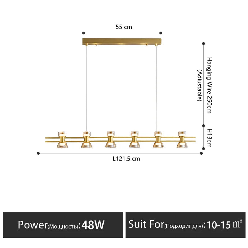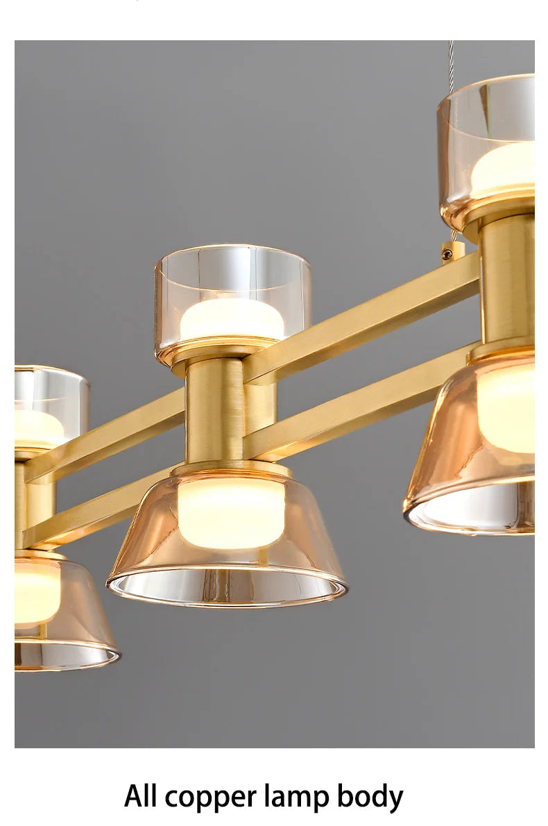 Skapa en sofistikerad och modern atmosfär med denna eleganta ljuskrona från DT. Med sin kombination av koppar, glas och akryl, samt dimbar LED-belysning, är den idealisk för restauranger, barer, köksöar och matplatser med stil.