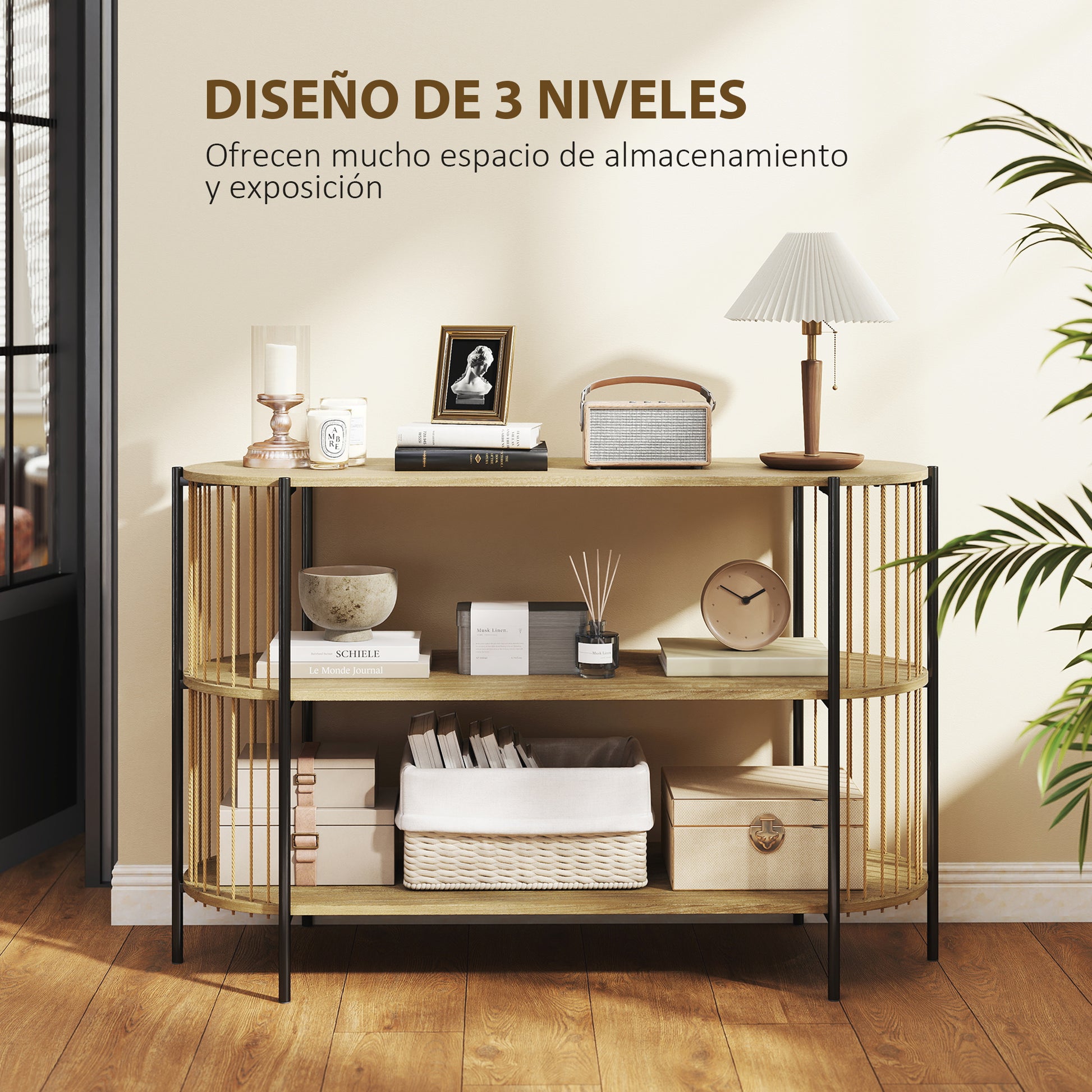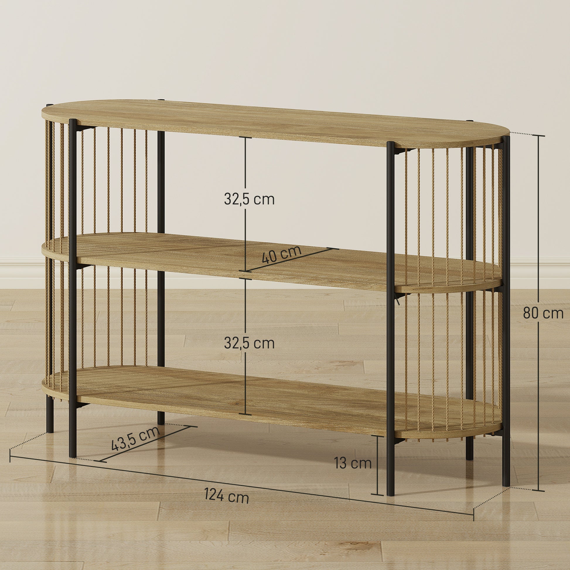 HOMCOM Konsolbord – Bohemisk Design med Handflätade Sidor & 3 Hyllplan