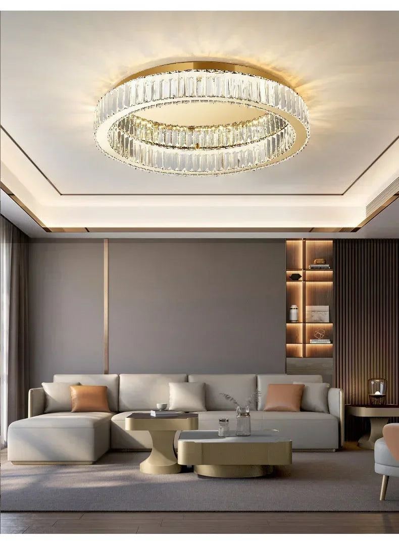 Kristallrund LED-taklampa – Lyxig Design i Guld & Silver för Hemmet