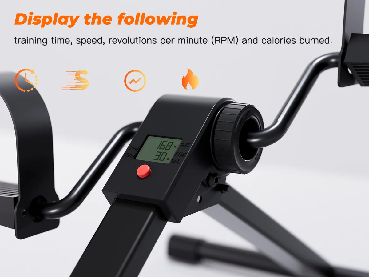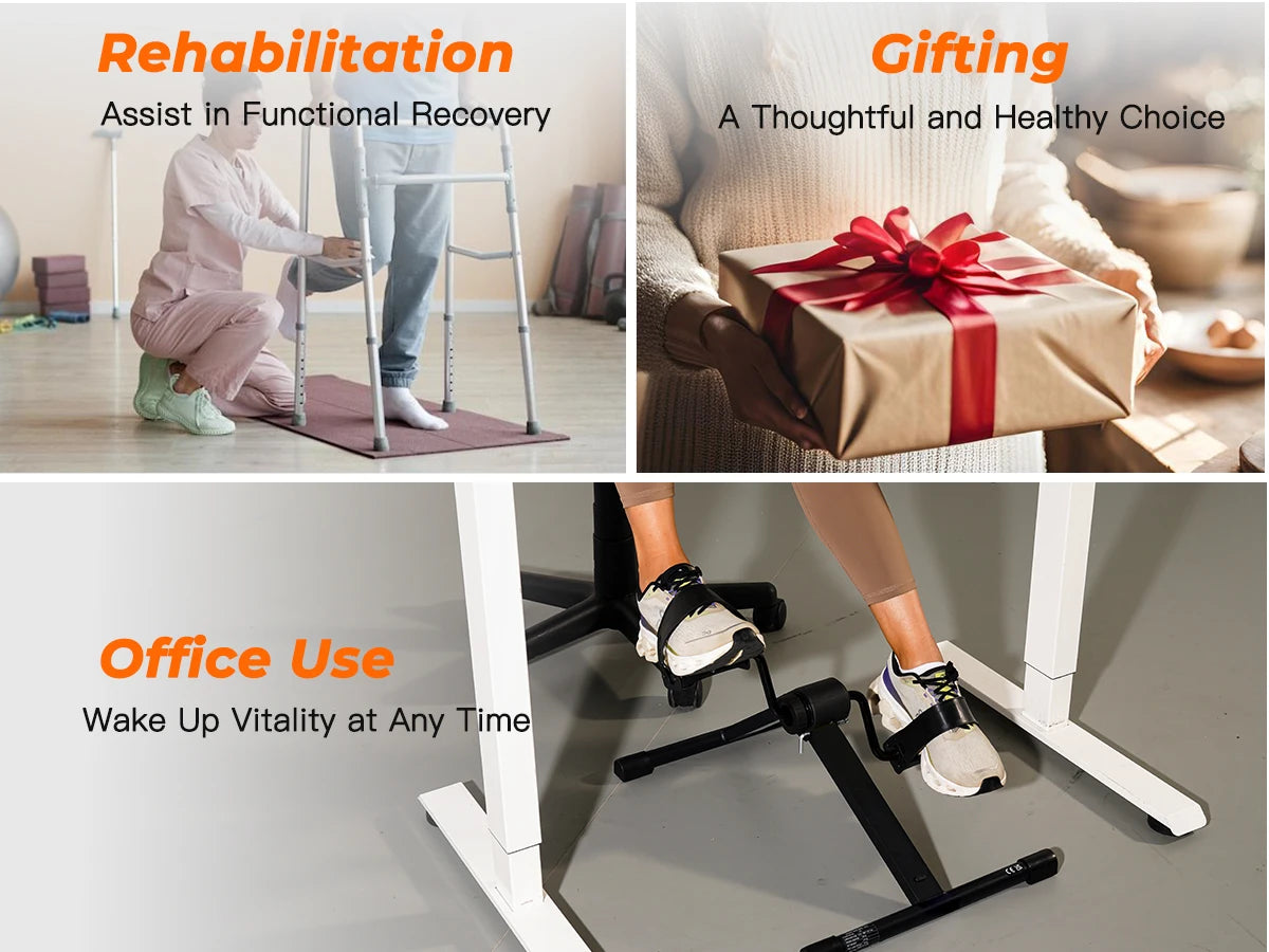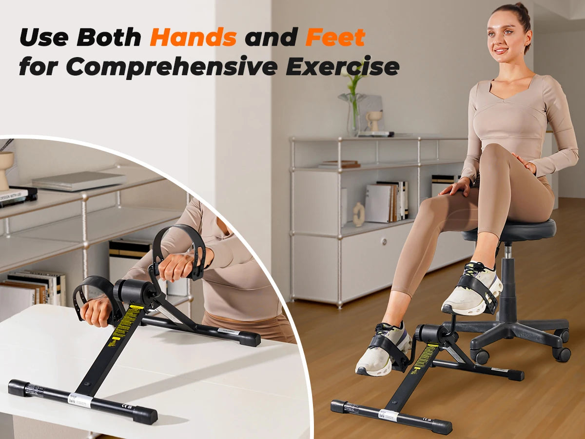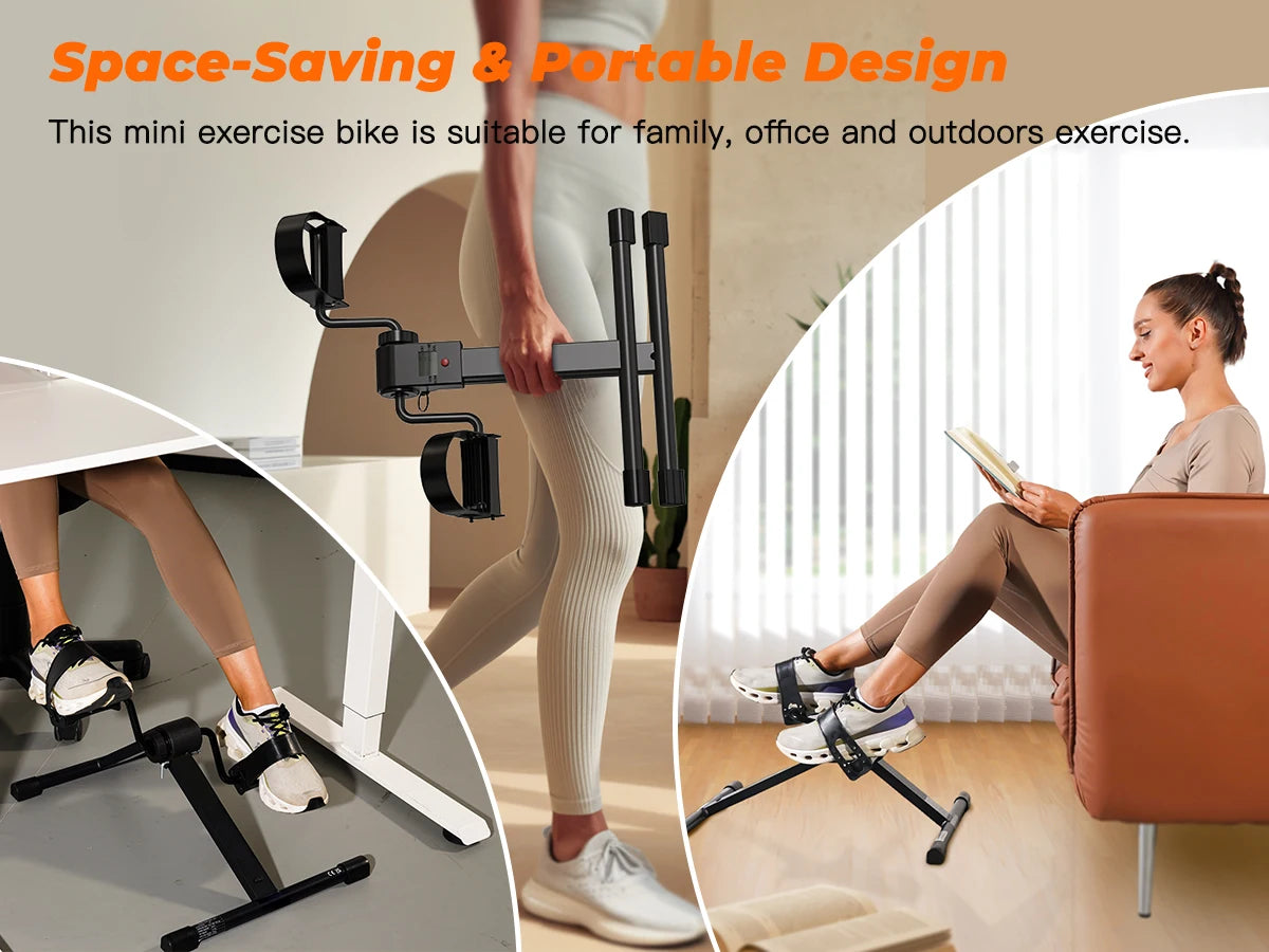Rotate the tension knob to adjust resistance, providing low-intensity resistance, suitable for light exercise and easy and smooth pedal movement. Folding design, compact and portable, easy to assemble and store, suitable for use during office or home exercise.