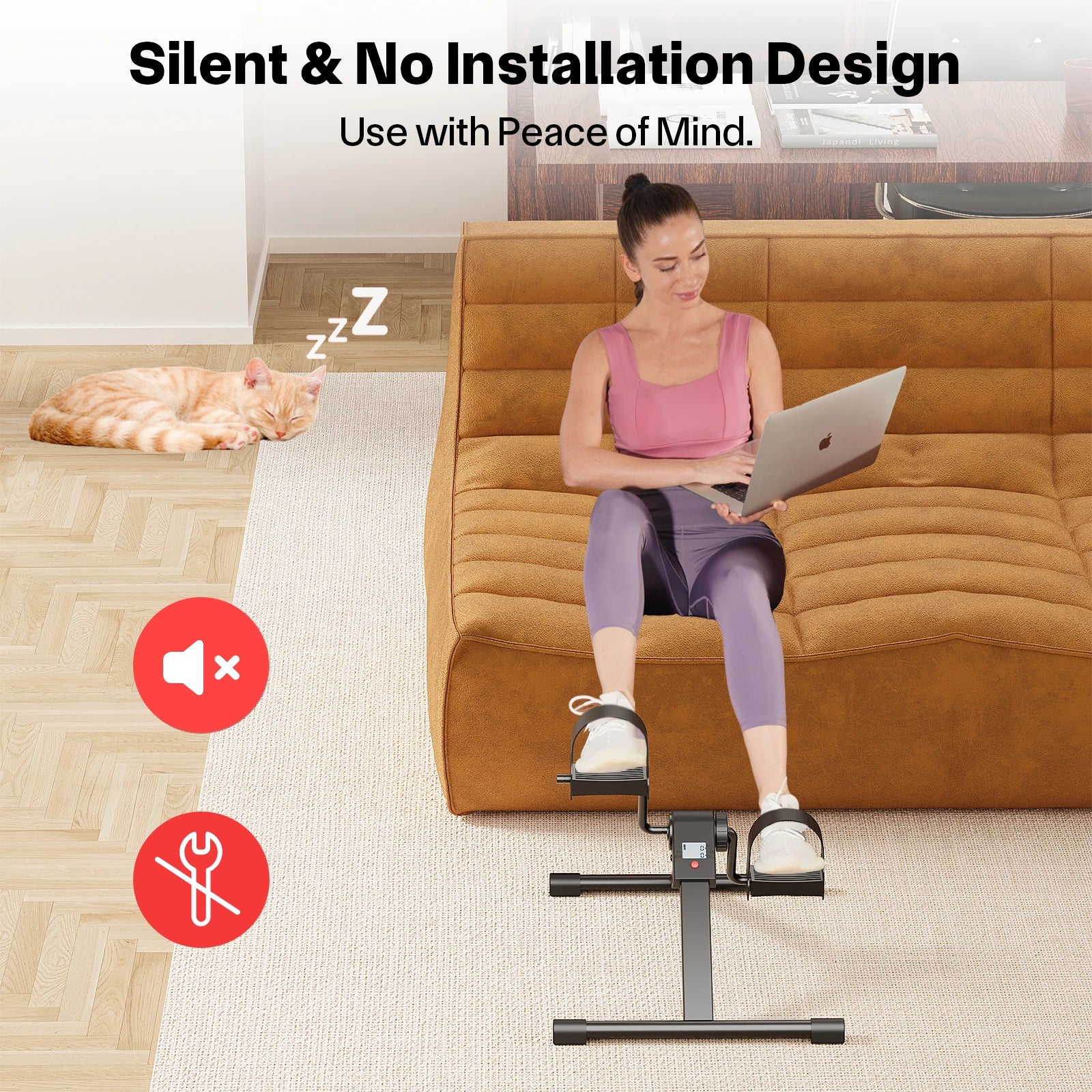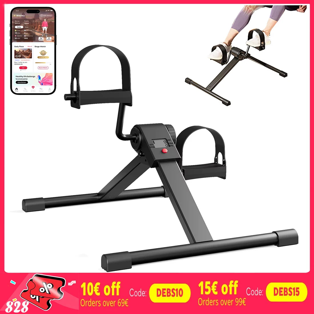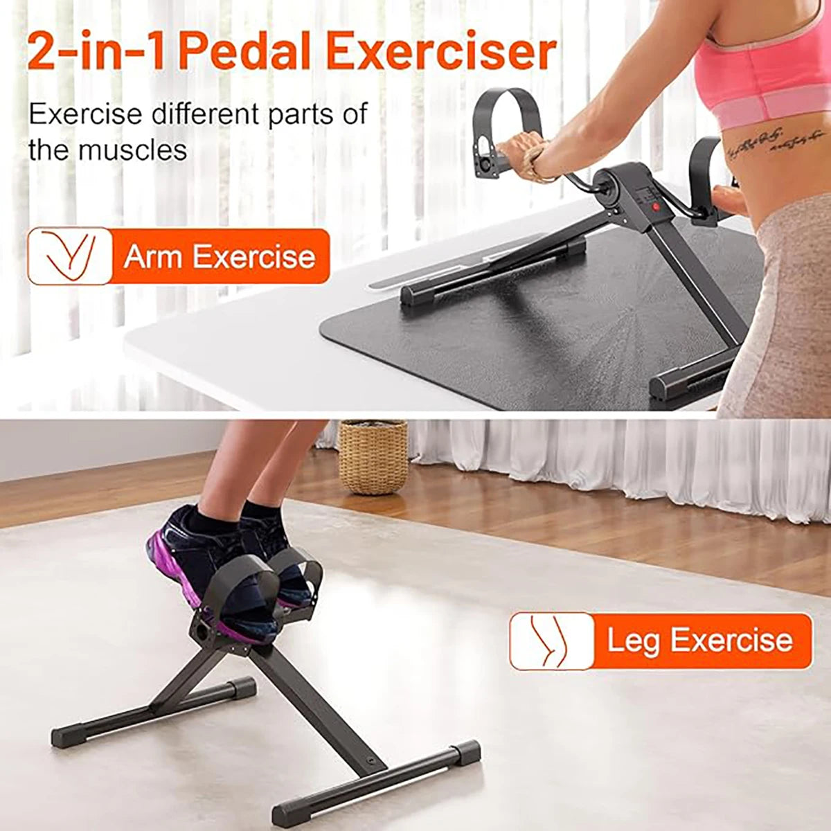 Rotate the tension knob to adjust resistance, providing low-intensity resistance, suitable for light exercise and easy and smooth pedal movement. Folding design, compact and portable, easy to assemble and store, suitable for use during office or home exercise.