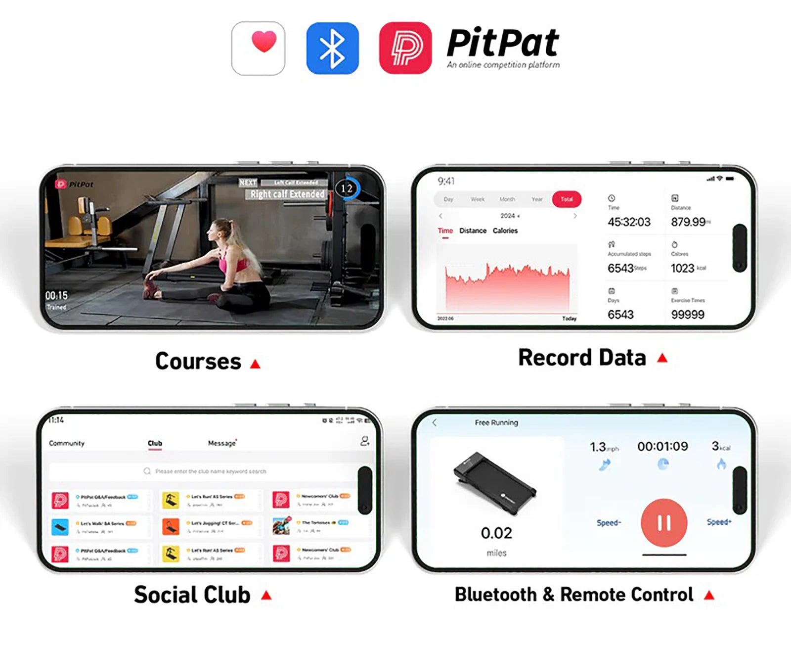 Intelligent anslutning till gångmaskinen med realtidsövervakning av träningsdata. Välj mellan flera visuella träningsscener och delta i online-sporttävlingar. AI-baserade träningskurser och digitala coacher hjälper dig att träna på ett vetenskapligt och hälsosamt sätt.