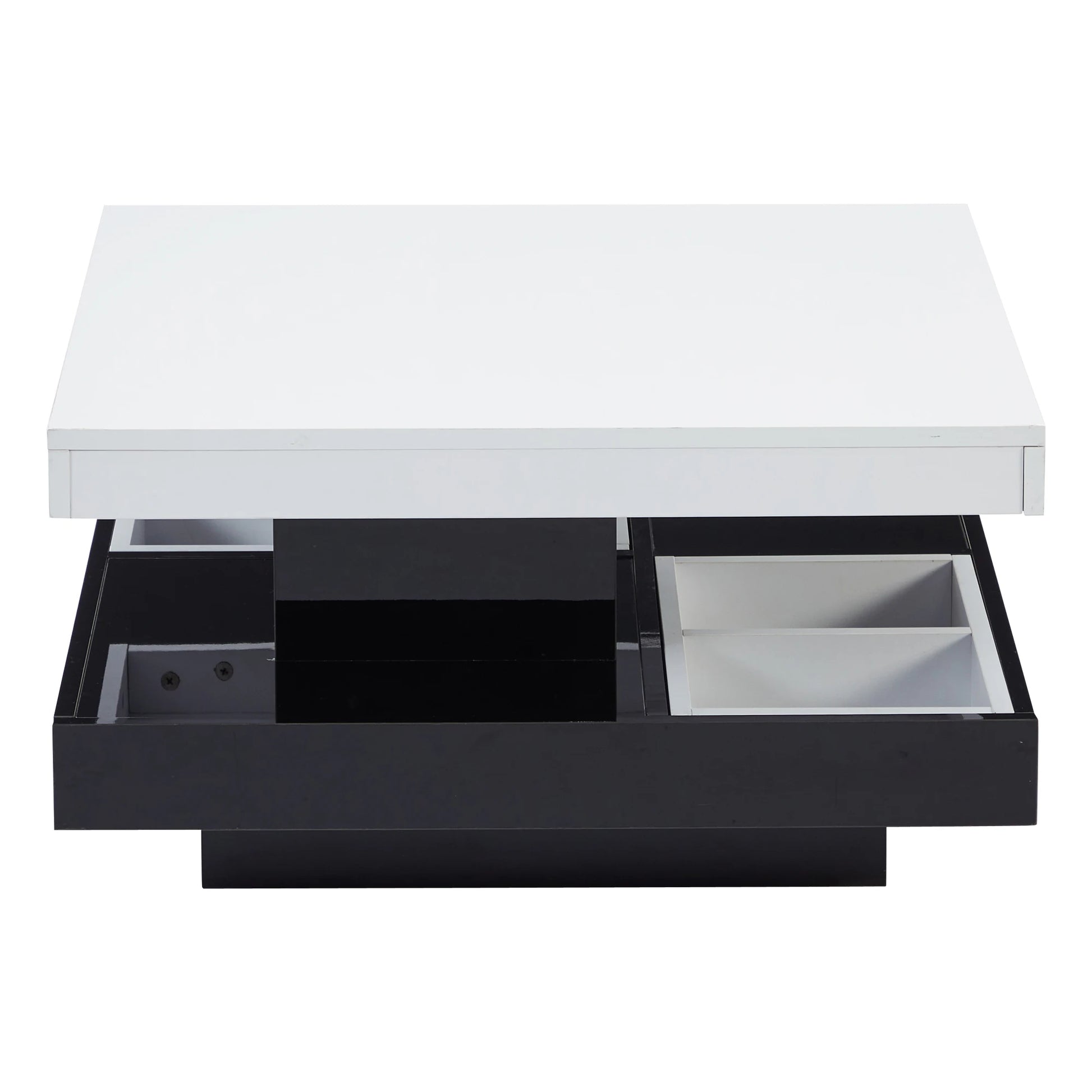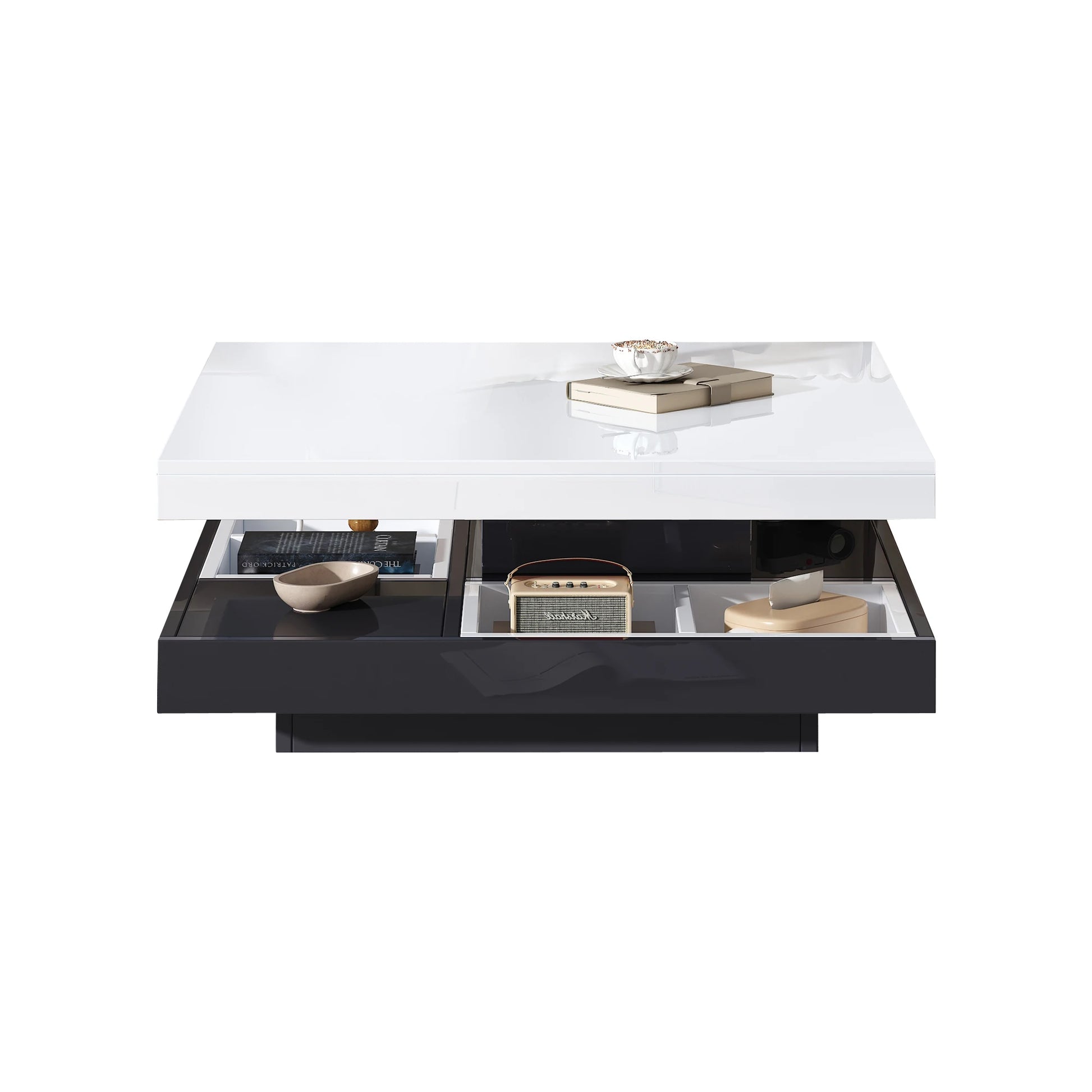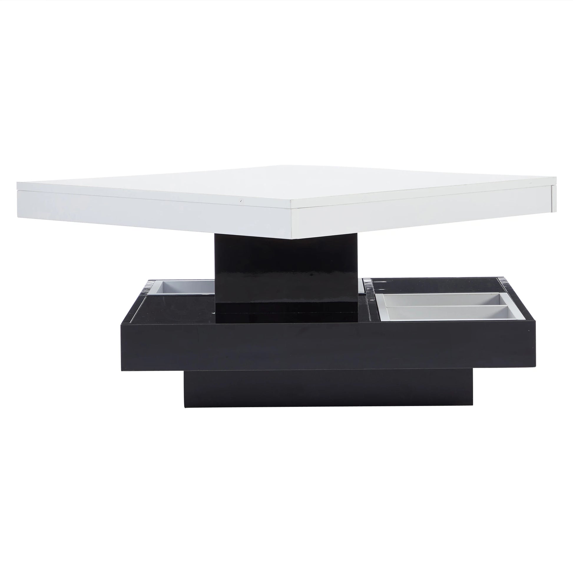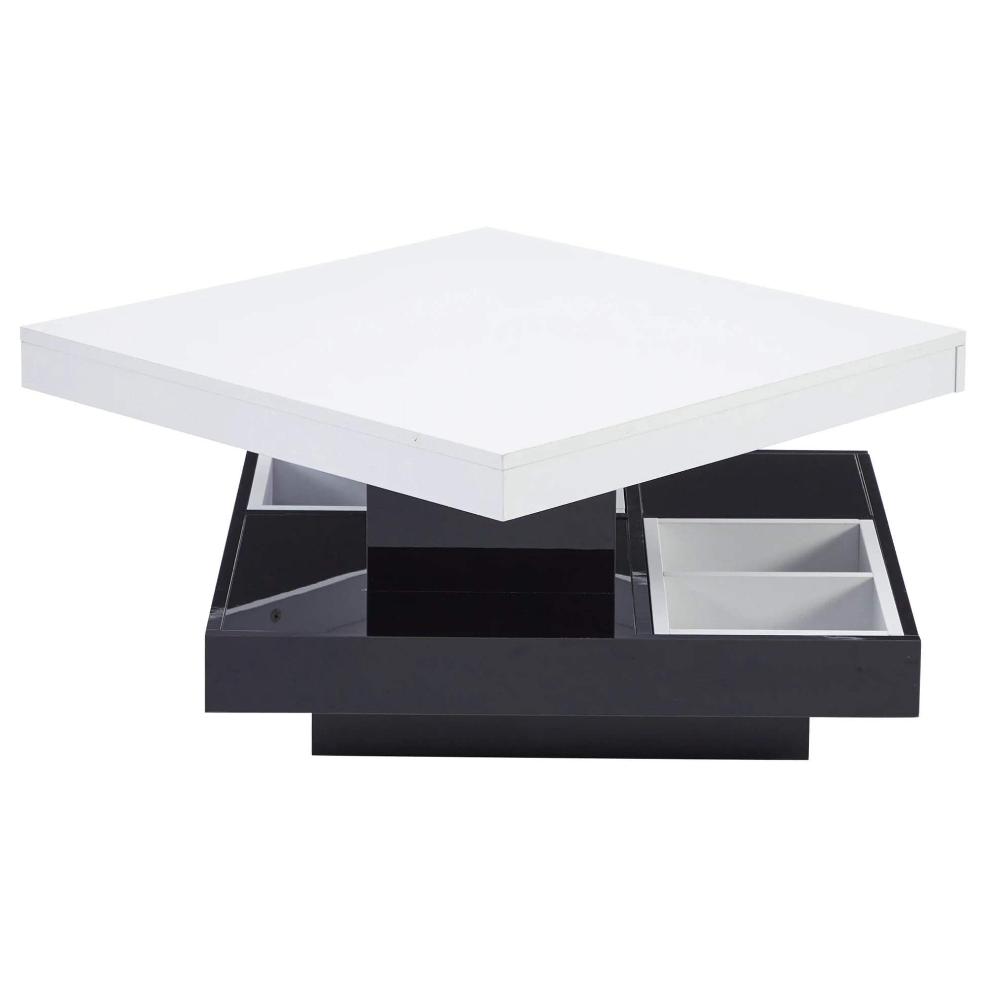 Ett lyxigt soffbord med modern design och smart funktionalitet. Den roterbara toppskivan och den dolda förvaringen gör det till ett perfekt val för stilrena och praktiska vardagsrum.