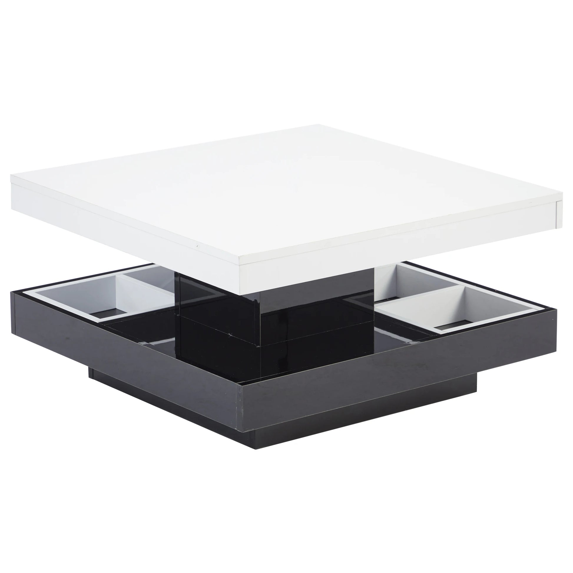 Roterbart Soffbord med Högblank Yta – Elegant & Funktionellt i Två Nivåer