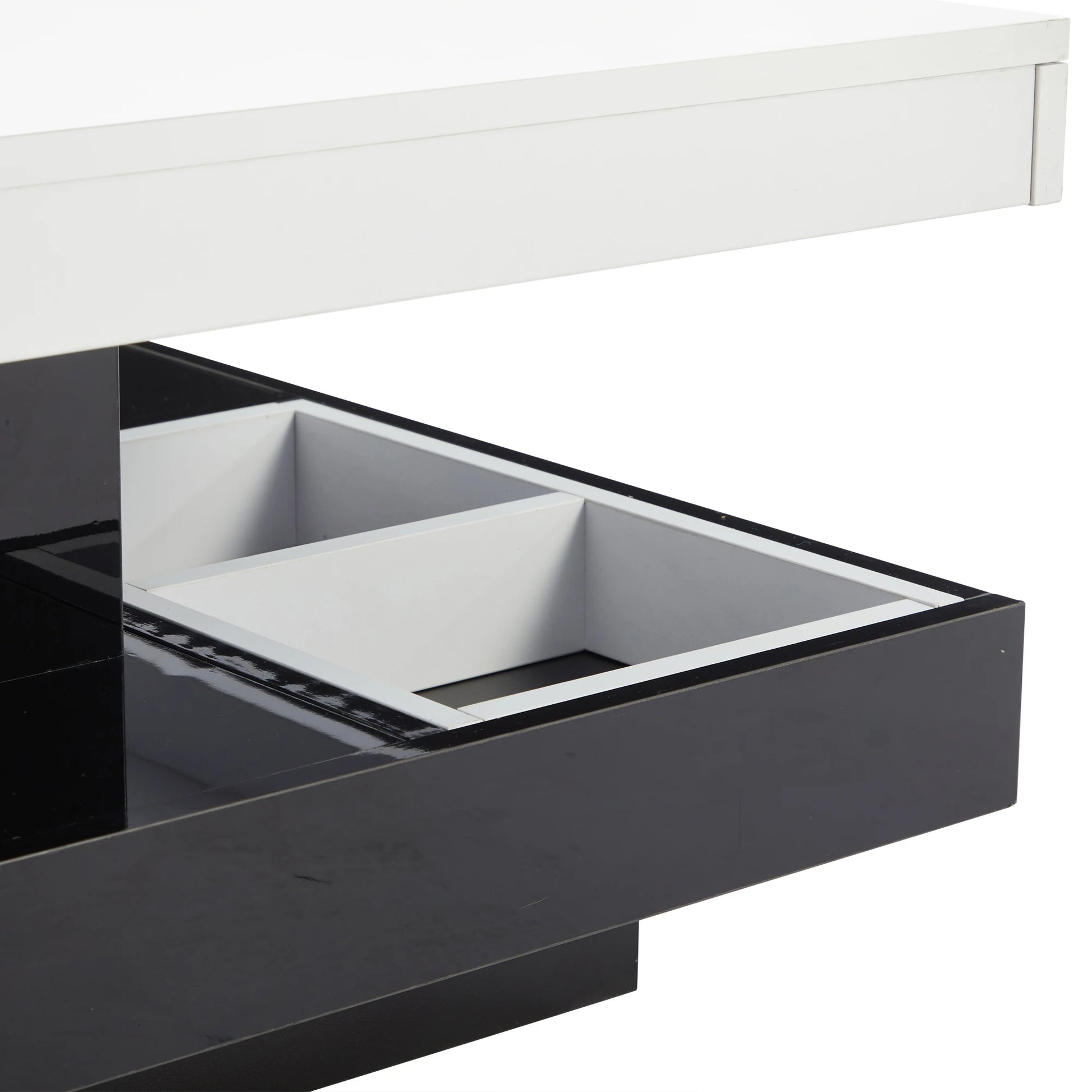 💎 Högblank finish: Den vita toppskivan i glansig yta reflekterar ljuset och ger rummet en ljusare och mer elegant känsla.