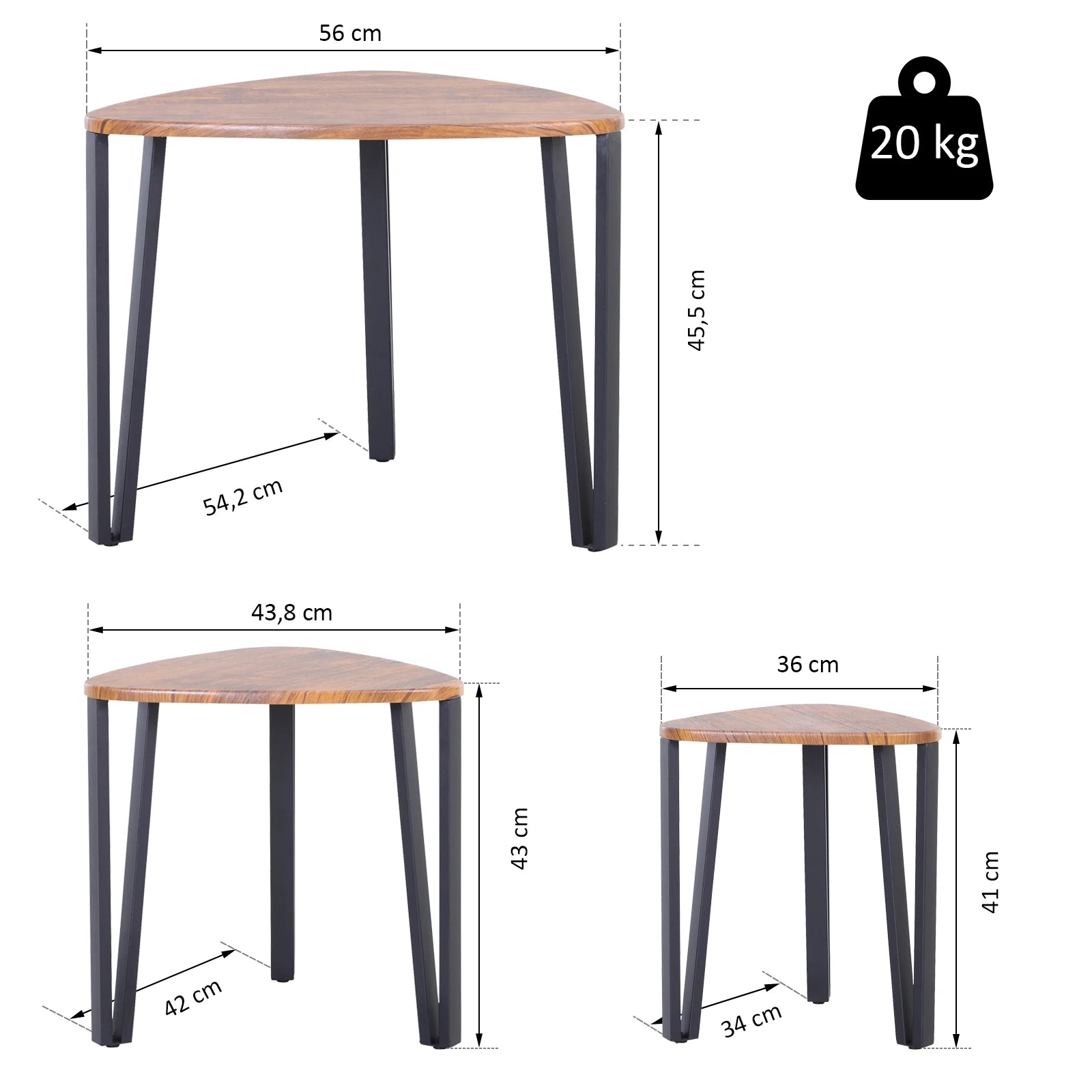 HOMCOM Set med 3 Moderna Soffbord – Nestdesign med Metallben