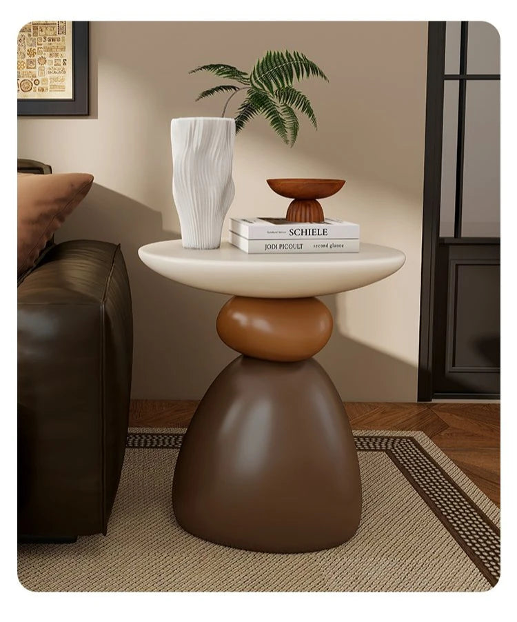 Lyft din inredning med detta stilrena soffbord i modern design. Med sin halvhandgjorda finish och släta resinmaterial passar det perfekt som sidobord, nattduksbord eller dekorativt hörnbord i både vardagsrum och sovrum.
