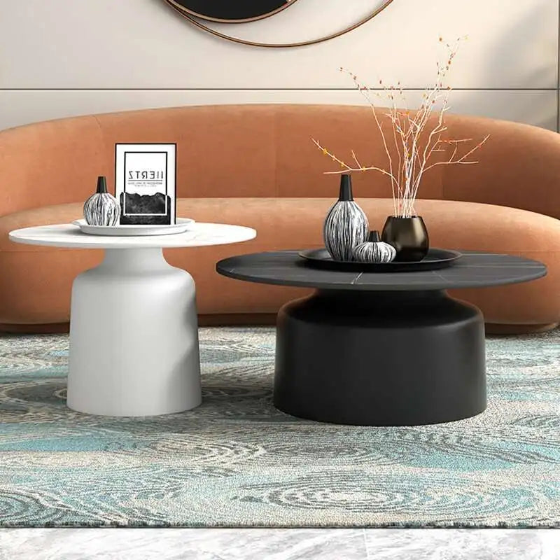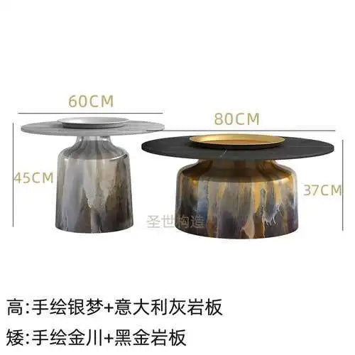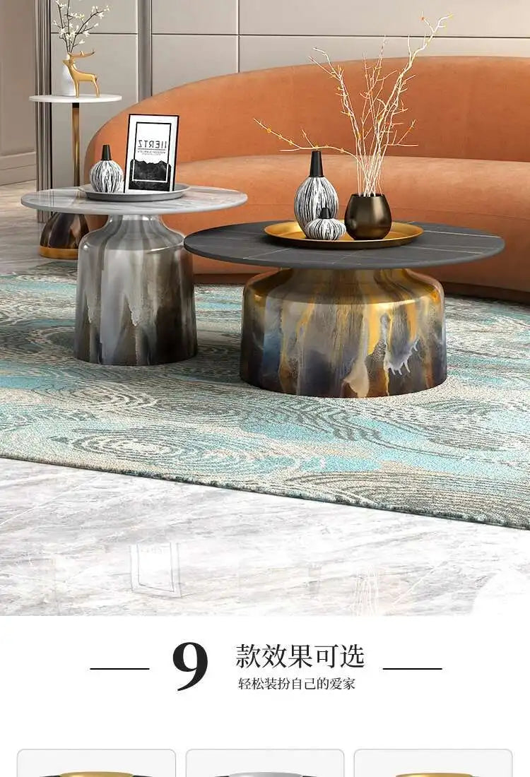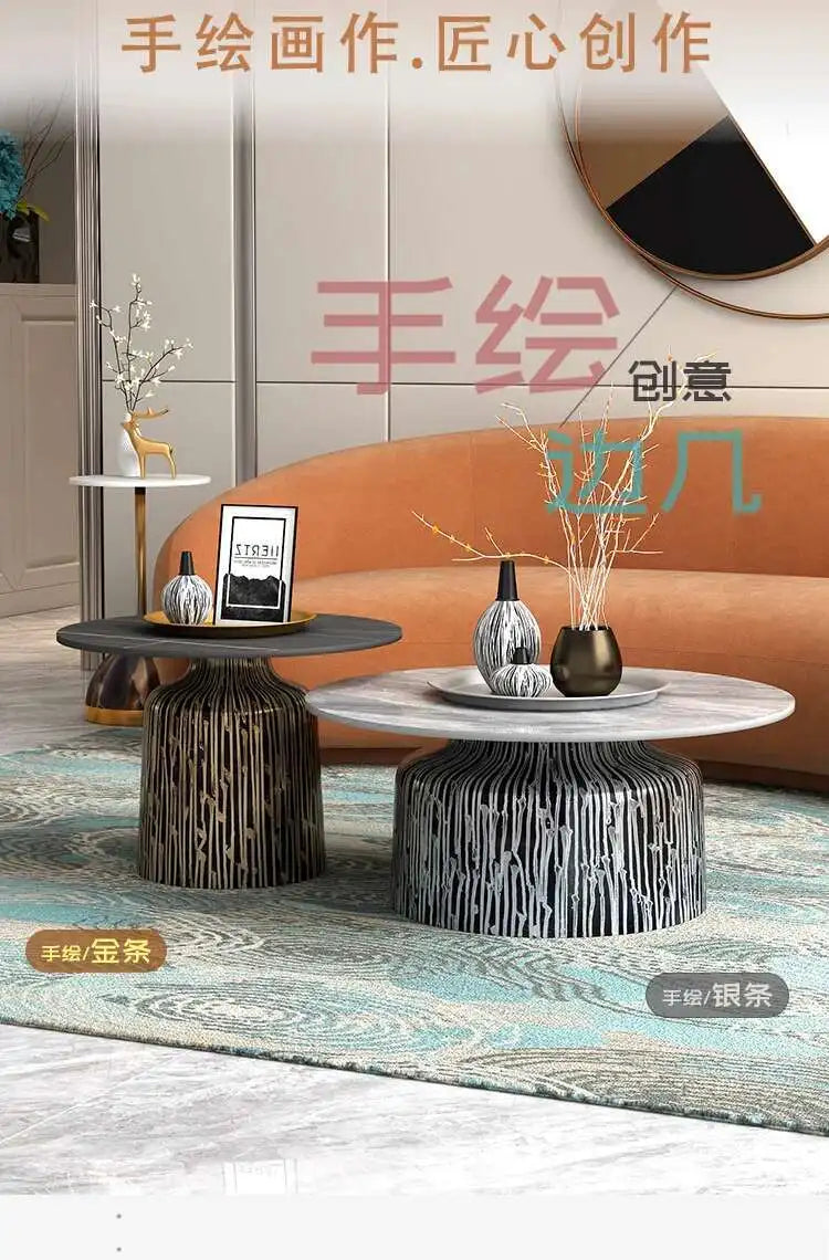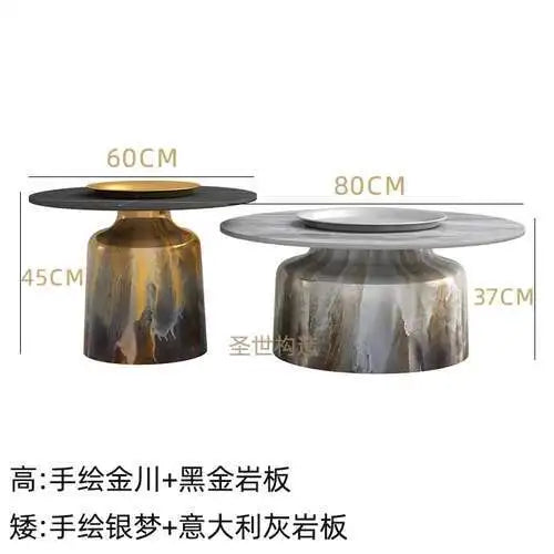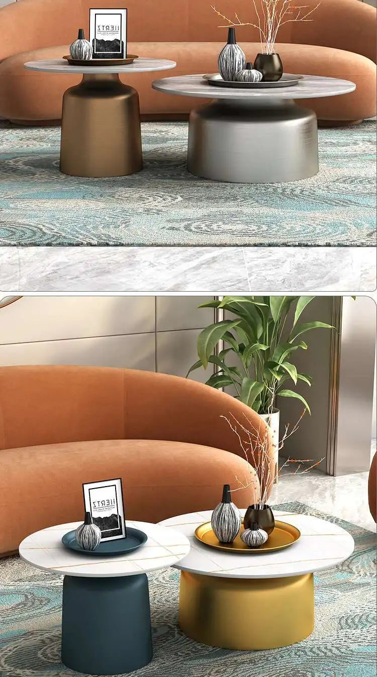soffbord i marmorsten, fransk rund låg sidobord – nordisk uppsättning för vardagsrumsdekoration