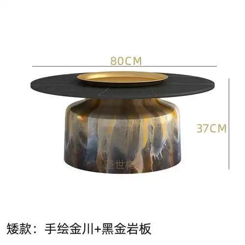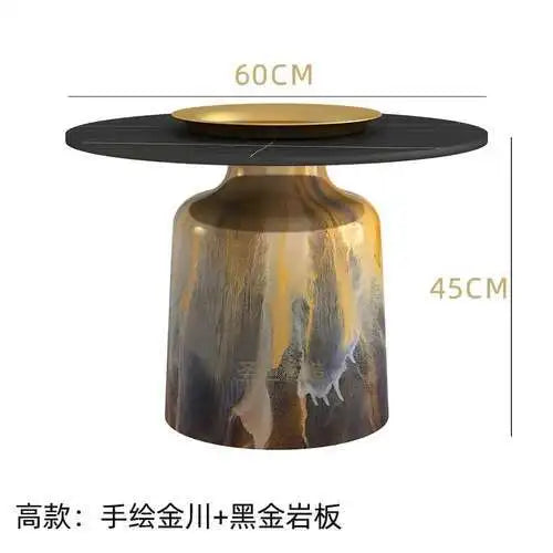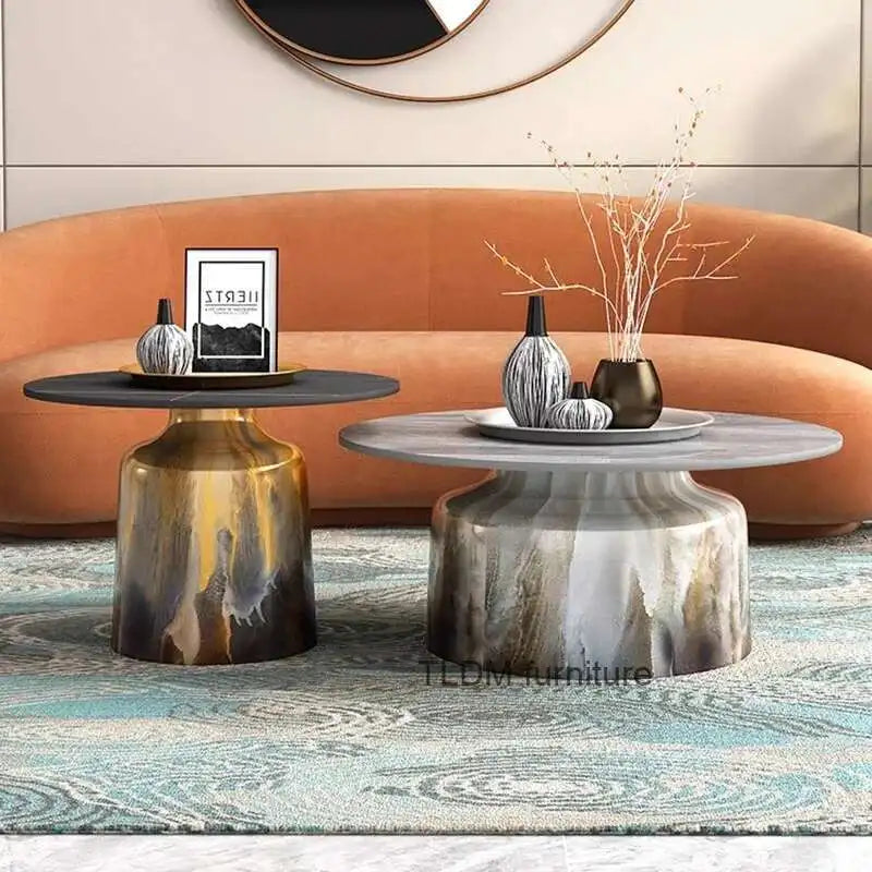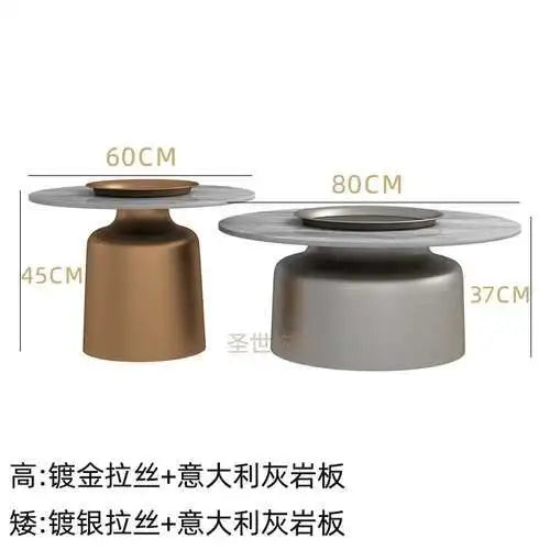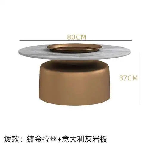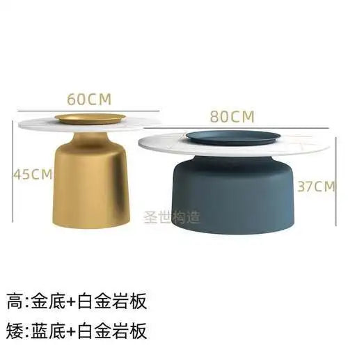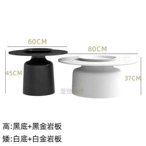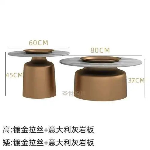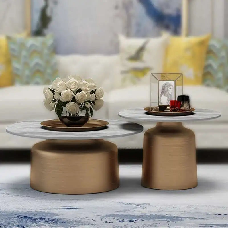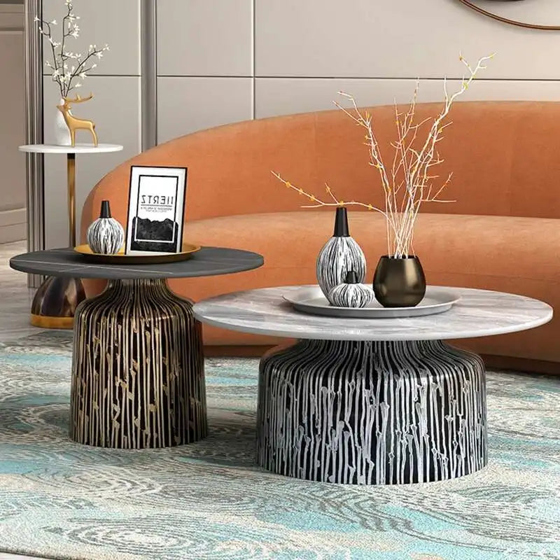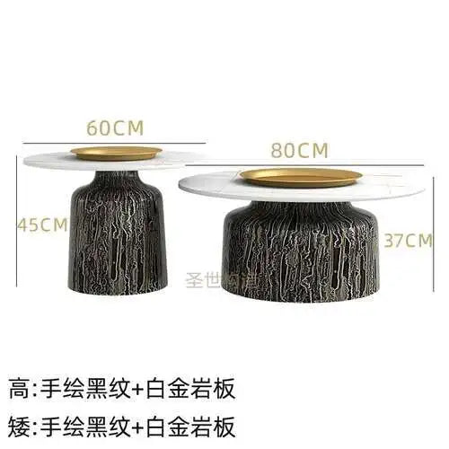 soffbord i marmorsten, fransk rund låg sidobord – nordisk uppsättning för vardagsrumsdekoration