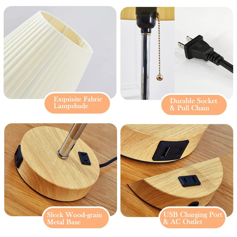 LED Sängbordslampa med USB-C-laddningsport – Modern bordslampa med tygskärm och dragströmbrytare