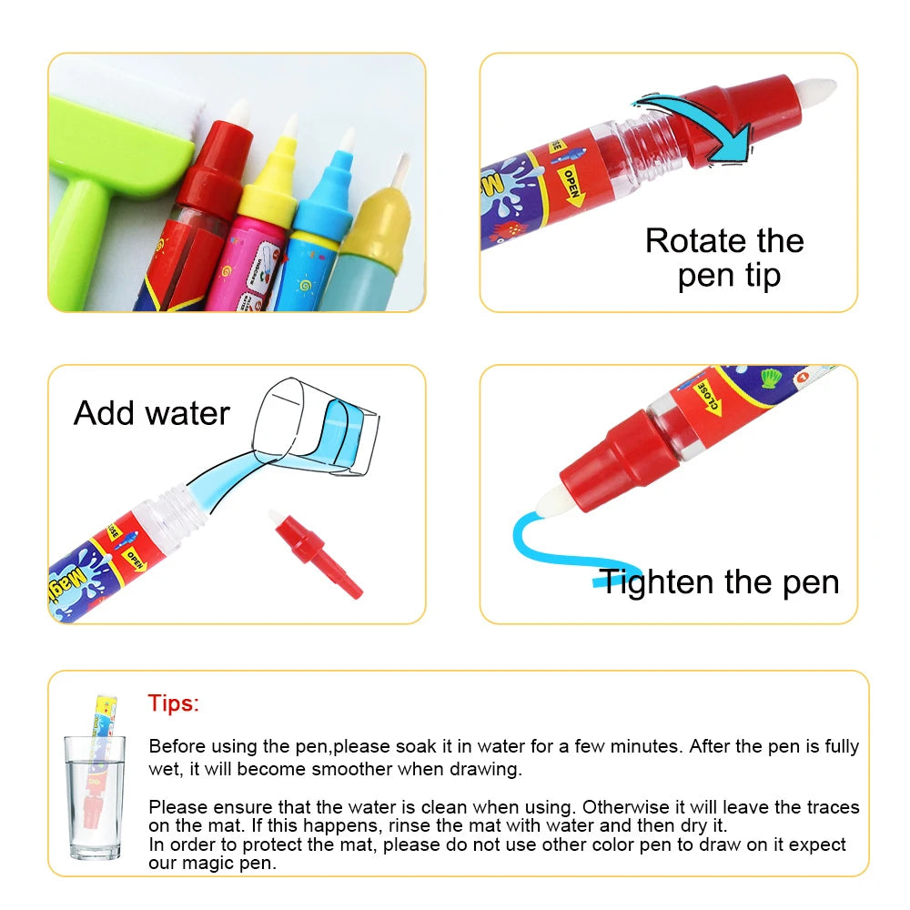 Magisk vattenmålningsmatta – Doodle-leksak med pennor för barn