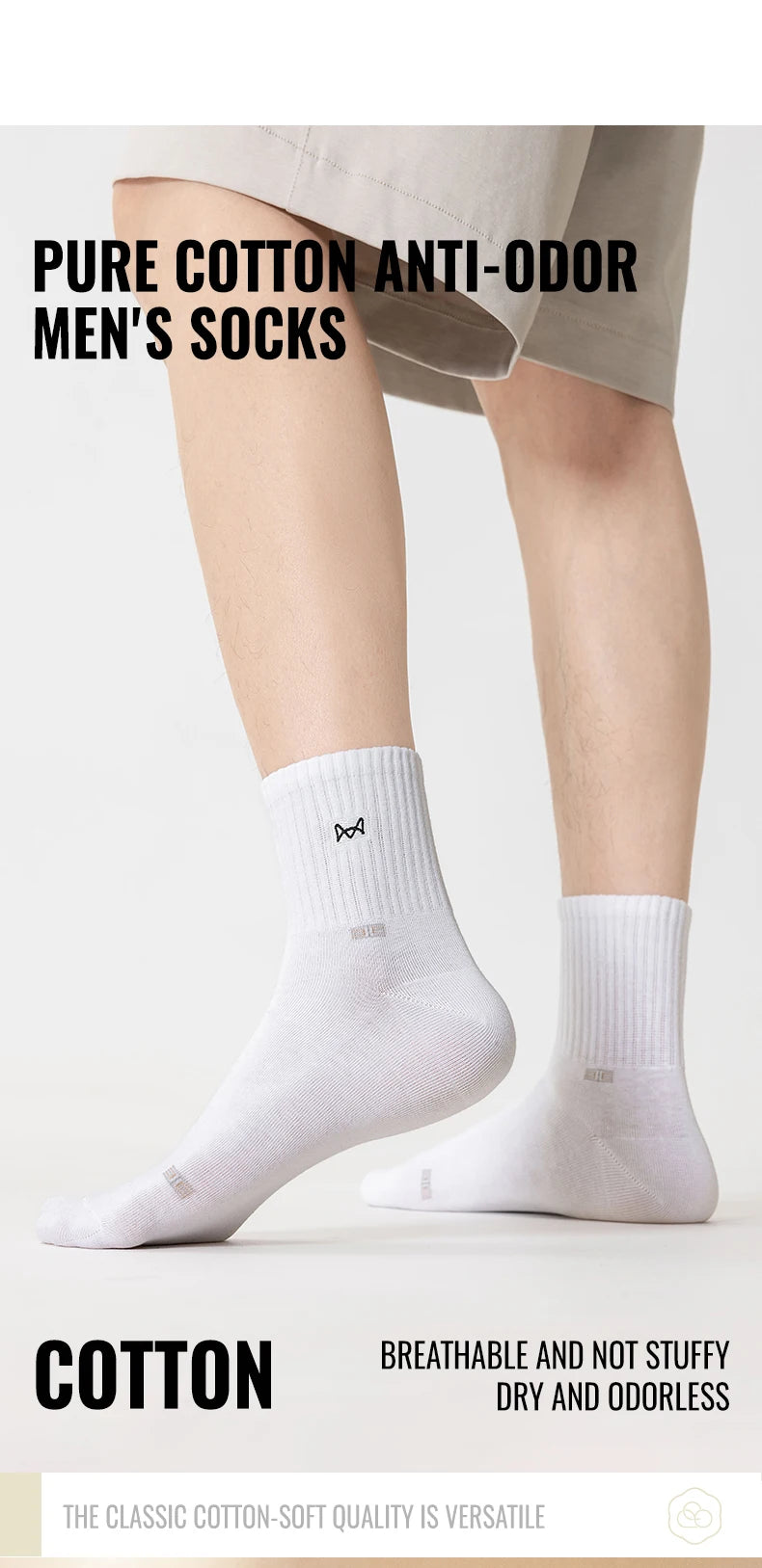 MiiOW Herrstrumpor – 100% Bomull – 5-pack – Svart & Vit – Andas & Luktfri