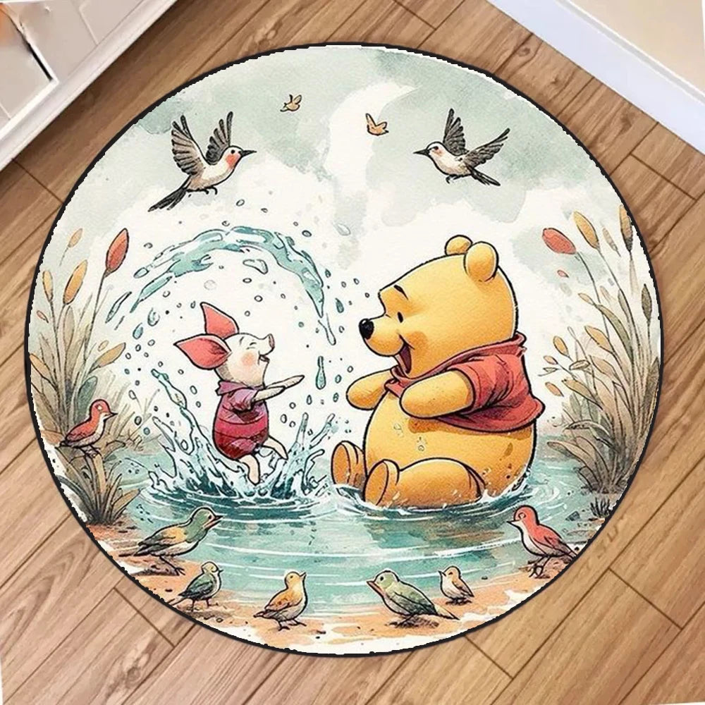 runda matta med Nalle Puh-motiv! Perfekt för barnrum, vardagsrum, badrum eller som dörrmatta.
