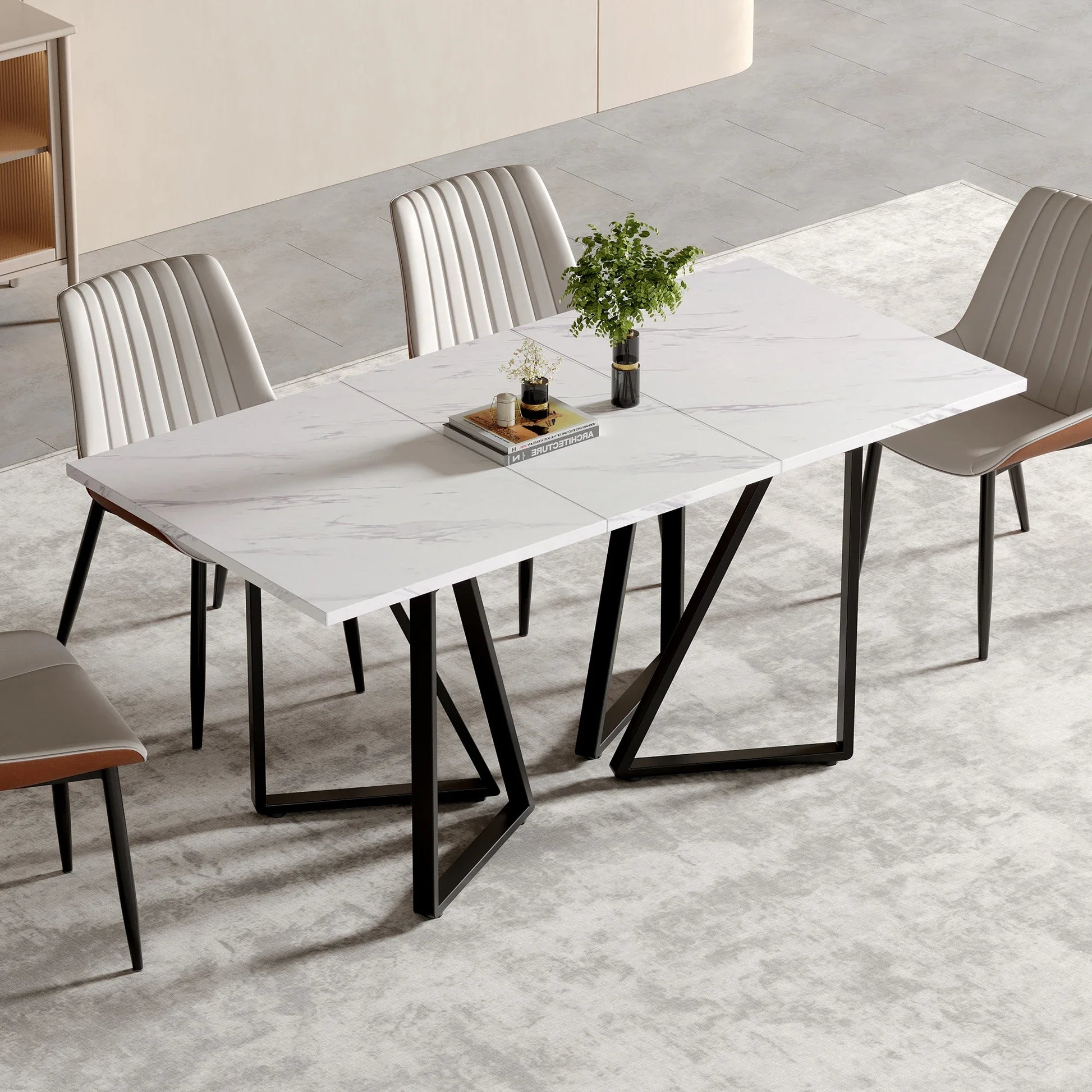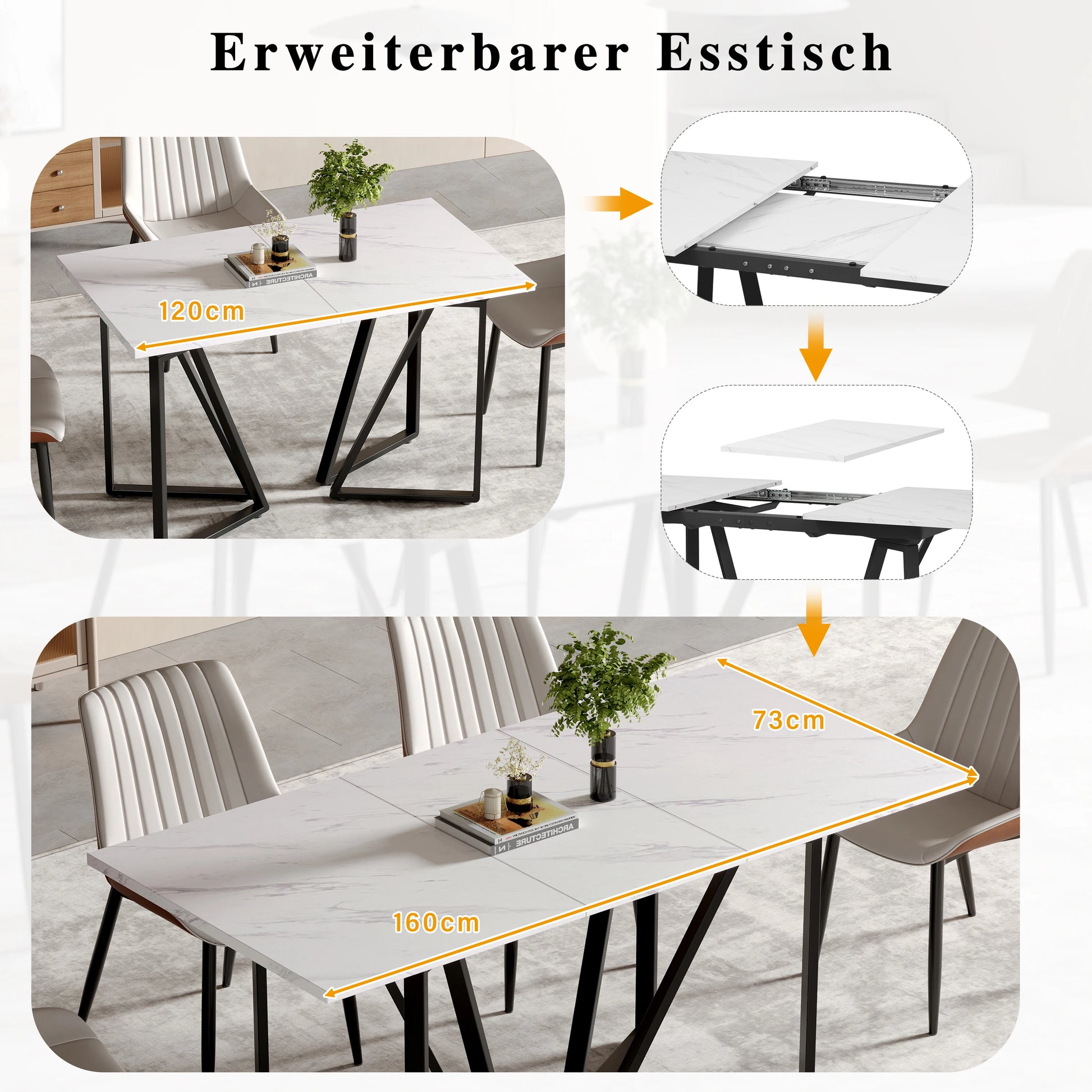 Utdragbart Matbord med Marmormönster – Modern Design för Matsal & Kök
