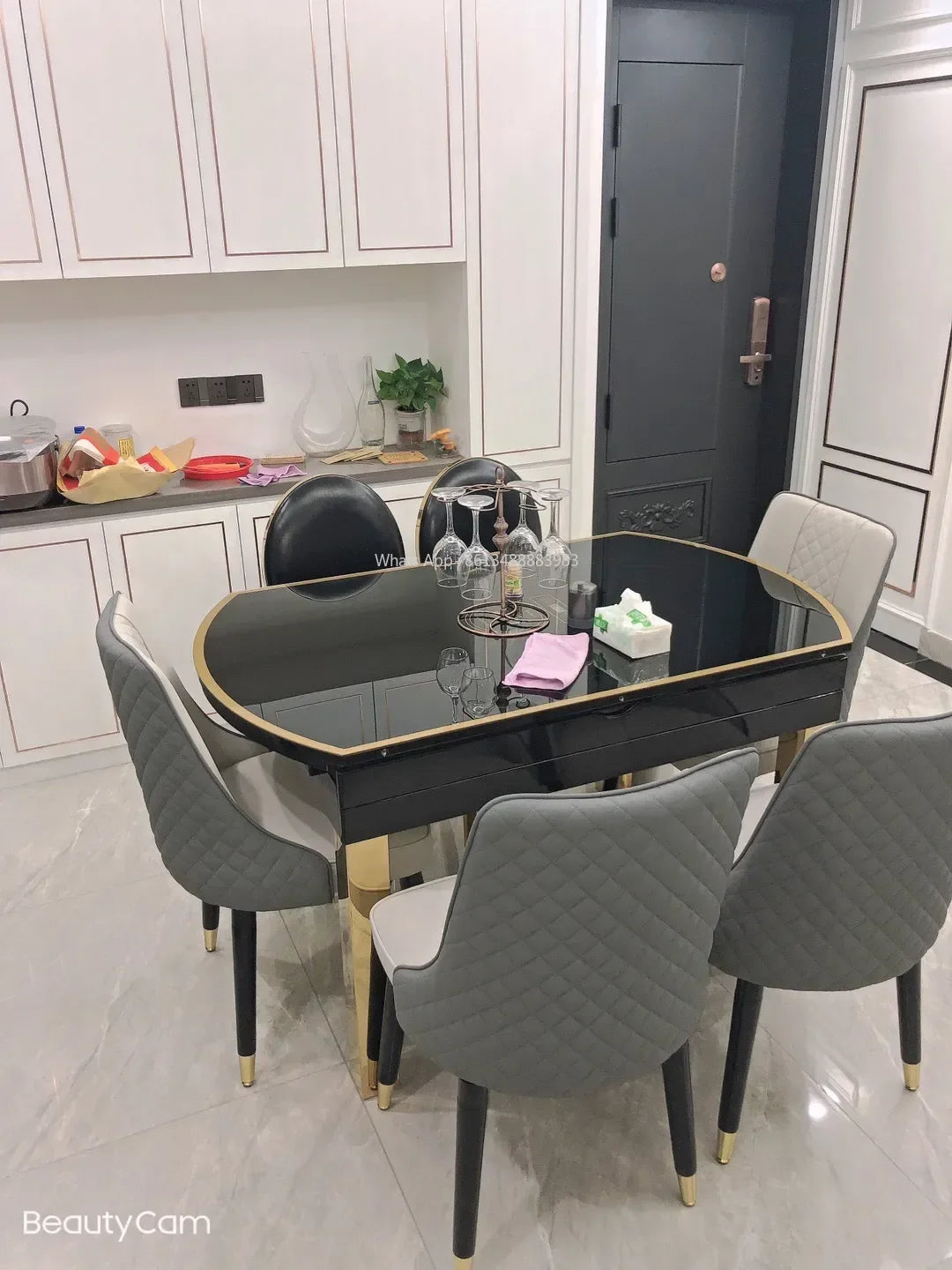 En elegant stol med konstläder och rostfri metallram – kombinerar italiensk stil med lekfull charm.